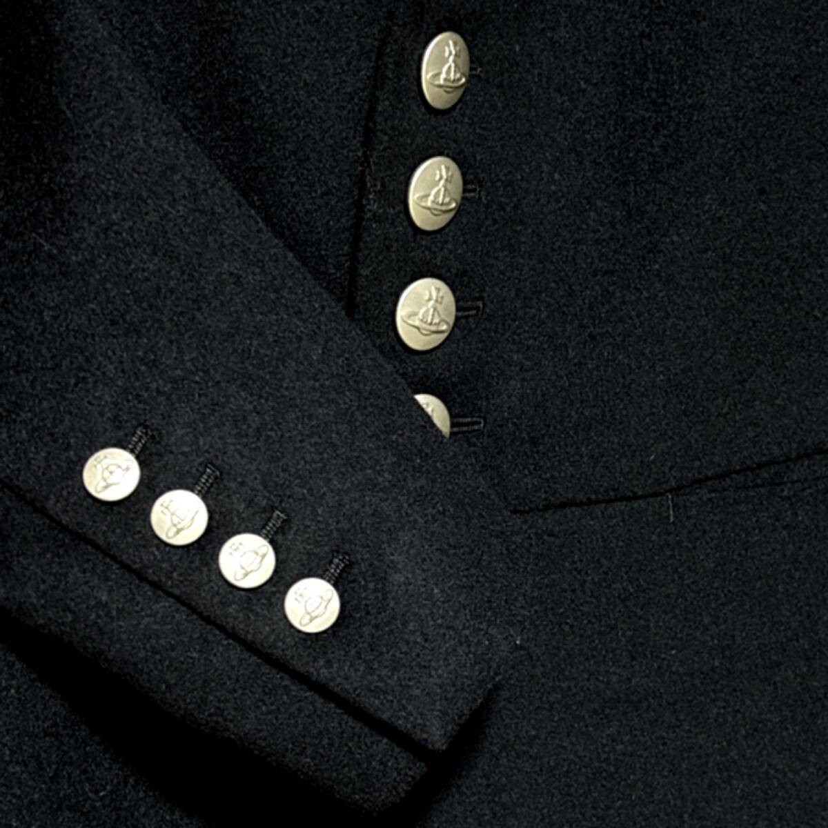 ウールカシミヤ混の上質なメルトンボディ、ラペル上部部分のベロア生地、フロントの近距離で配置されたメタルのオーブボタンなど、ブランドらしい拘りの1着です♪