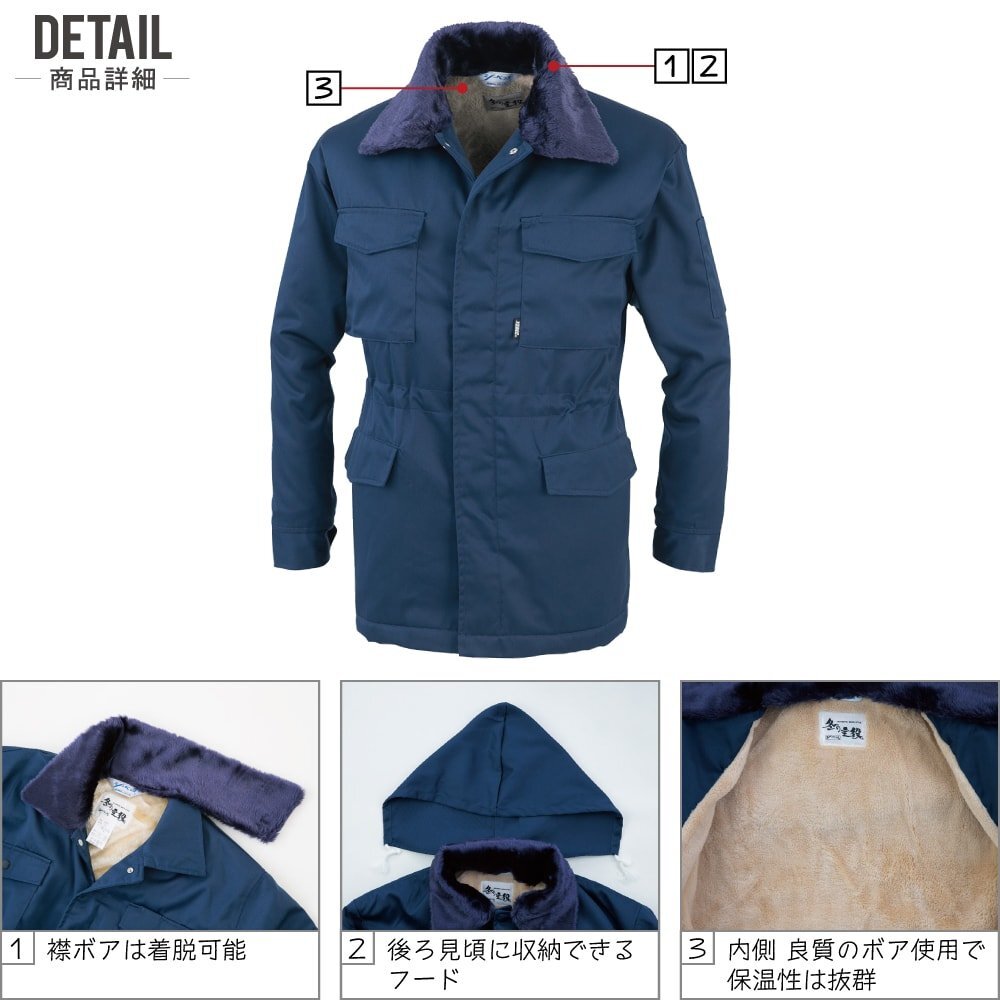 ジーベック 秋冬 防寒 コート 収納式フード 脱着式襟ボア 丈夫でシワになりにくい 481 色:コン サイズ:4L ★ 対象2点 送料無料 ★