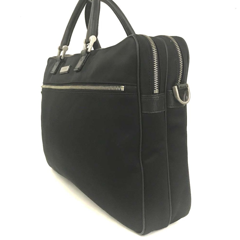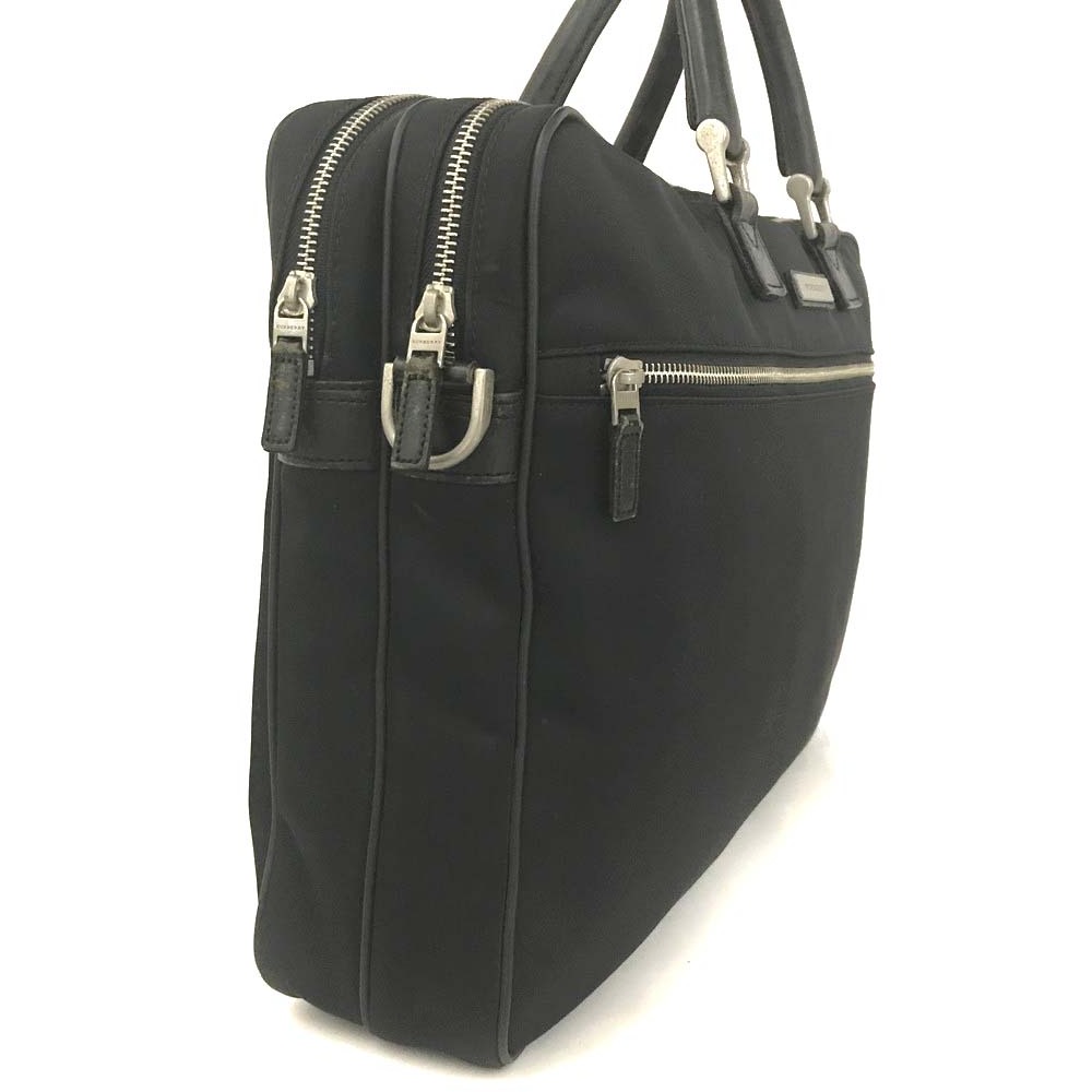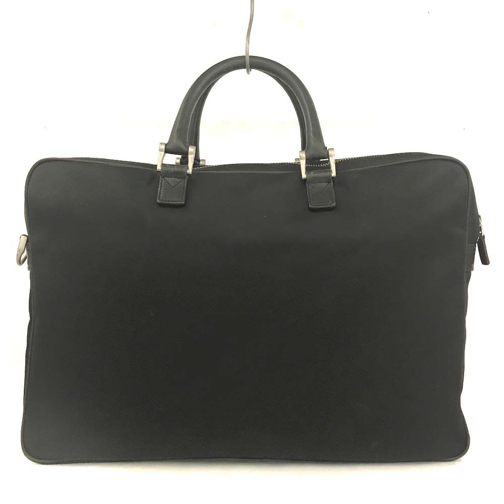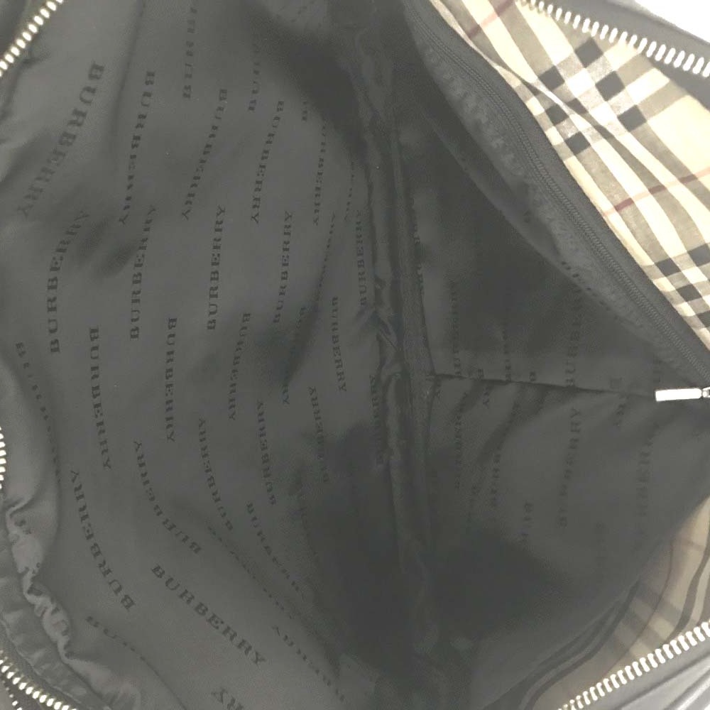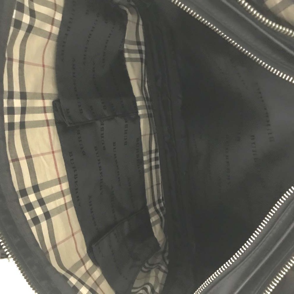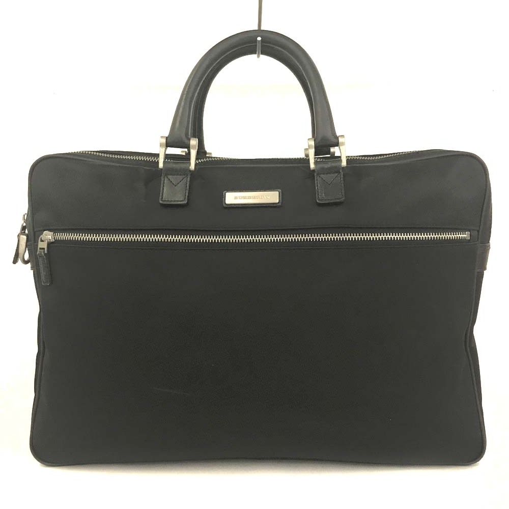 1円 BURBERRY バーバリー ナイロン レザー ロゴプレート ダブルジップ ビジネスバッグ ハンドバッグ ブラック /ZX1341