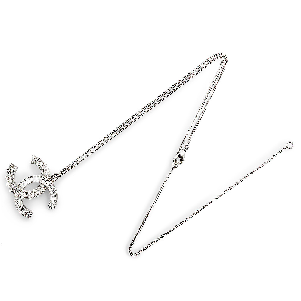 「CCマーク」がキラキラ輝くラインストーンのネックレス。高級感溢れるラインストーンのネックレスは、カジュアルからエレガントまで幅広いコーディネートにお使い頂けます。こちらはロングでもショートでもお使いいただけますので、どんなシーンにもマッチして、さりげなくブランドアピールもしてくれる優秀なアイテムです。