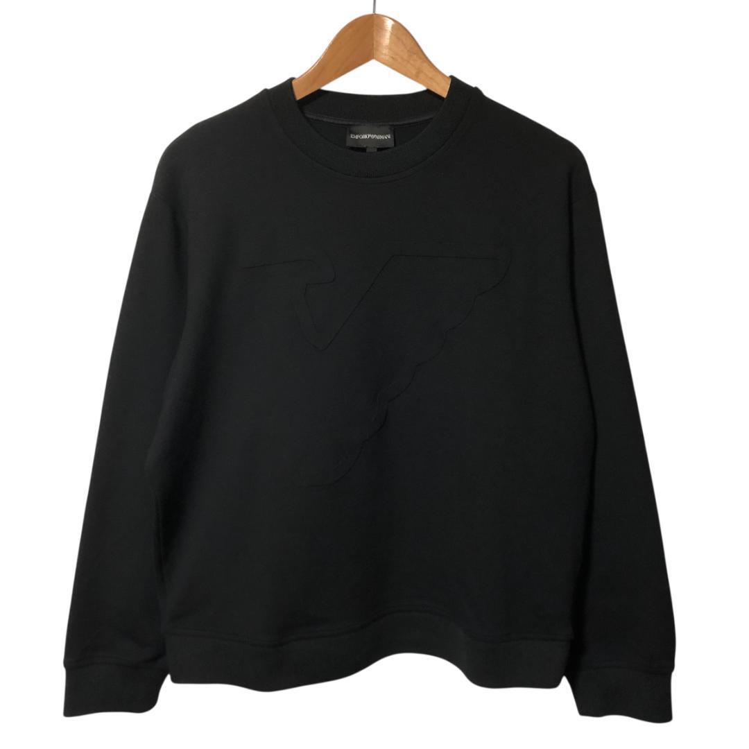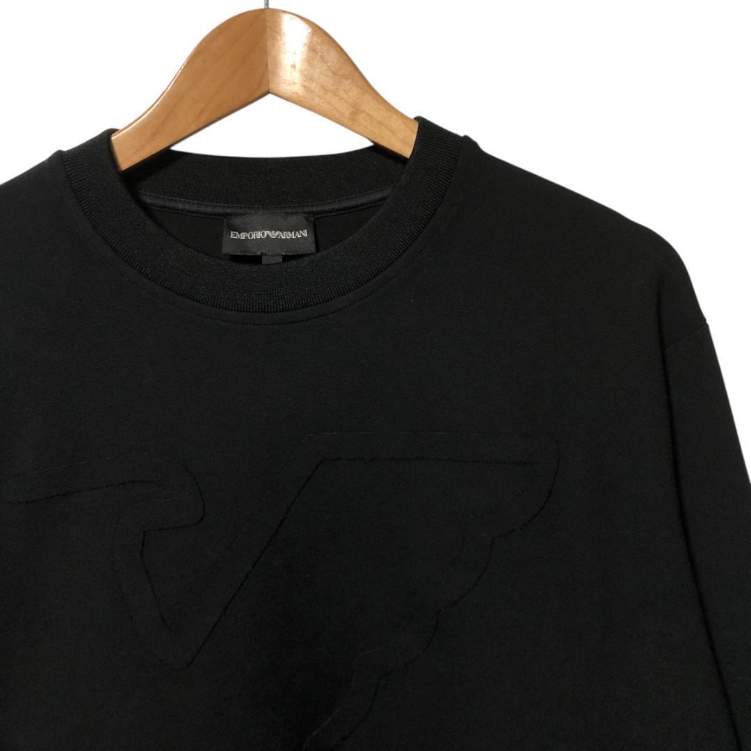 EMPORIO ARMANI エンポリオアルマーニ スウェット トレーナー ジャージー ロゴ 42 黒 長袖 ストレッチ メンズ M14