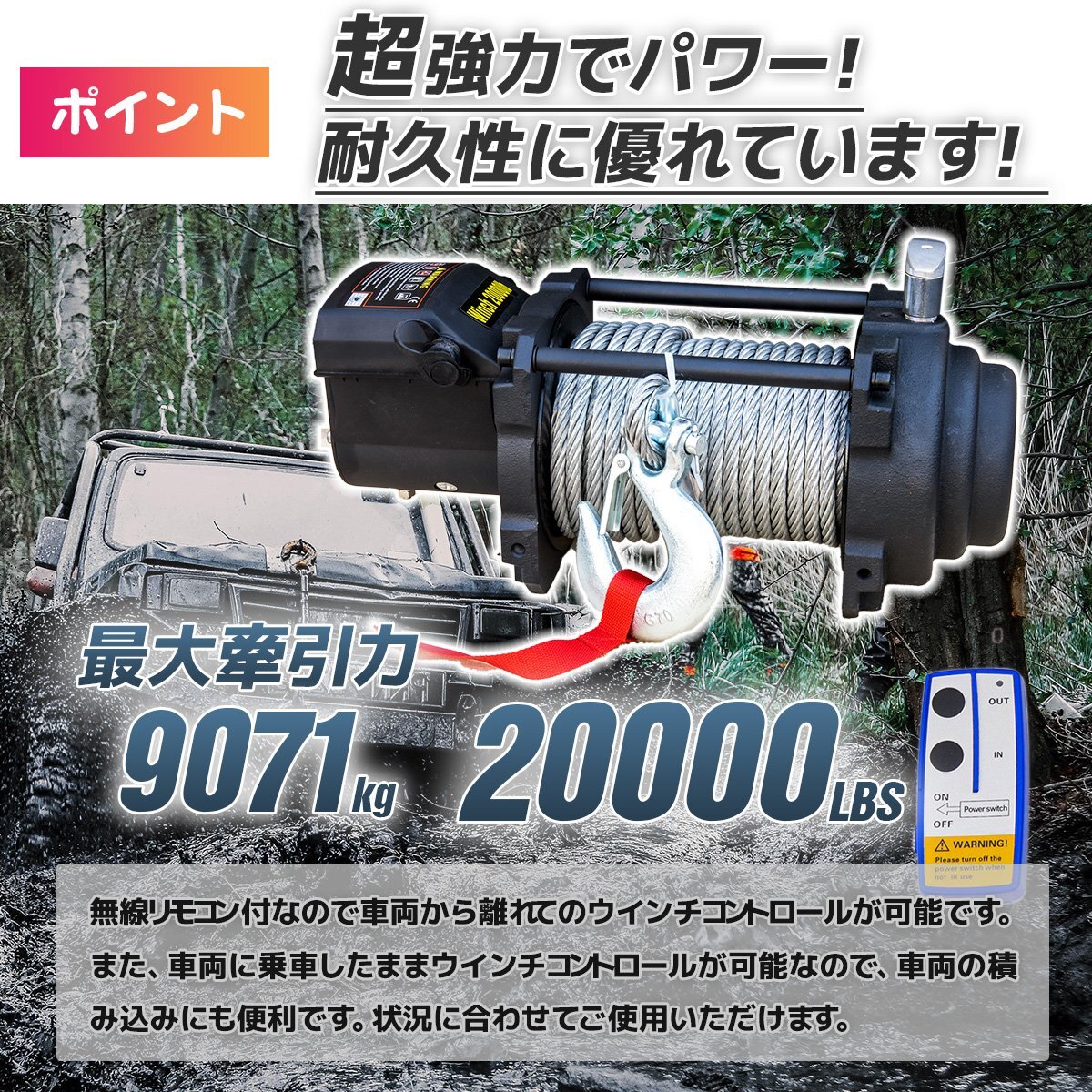 【営業所止め】電動ウィンチ 12v 20000LBS ウインチ DC12V 防水 強力 荷揚げ 引き上げ 運搬 有線コントローラー ボート ハイパワー