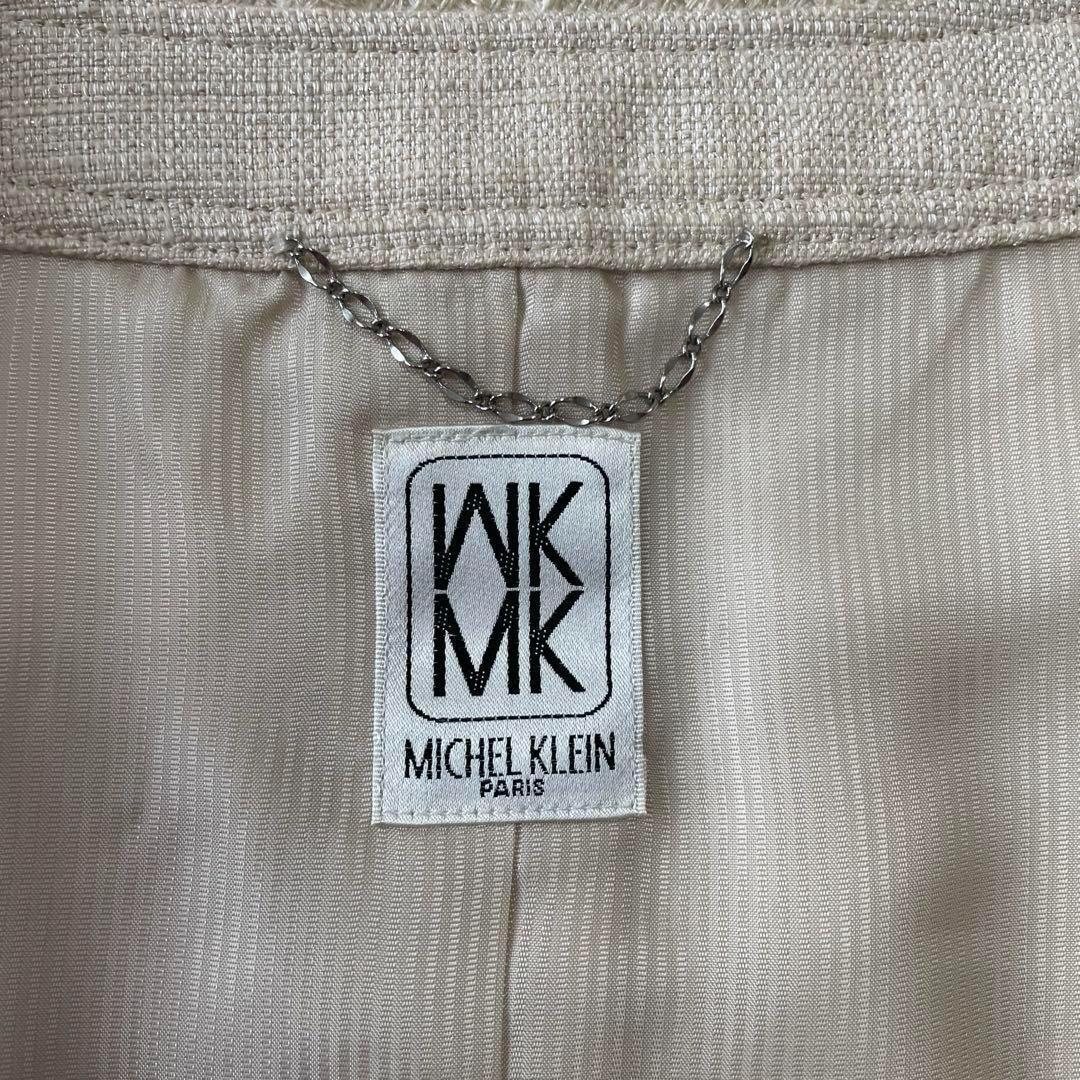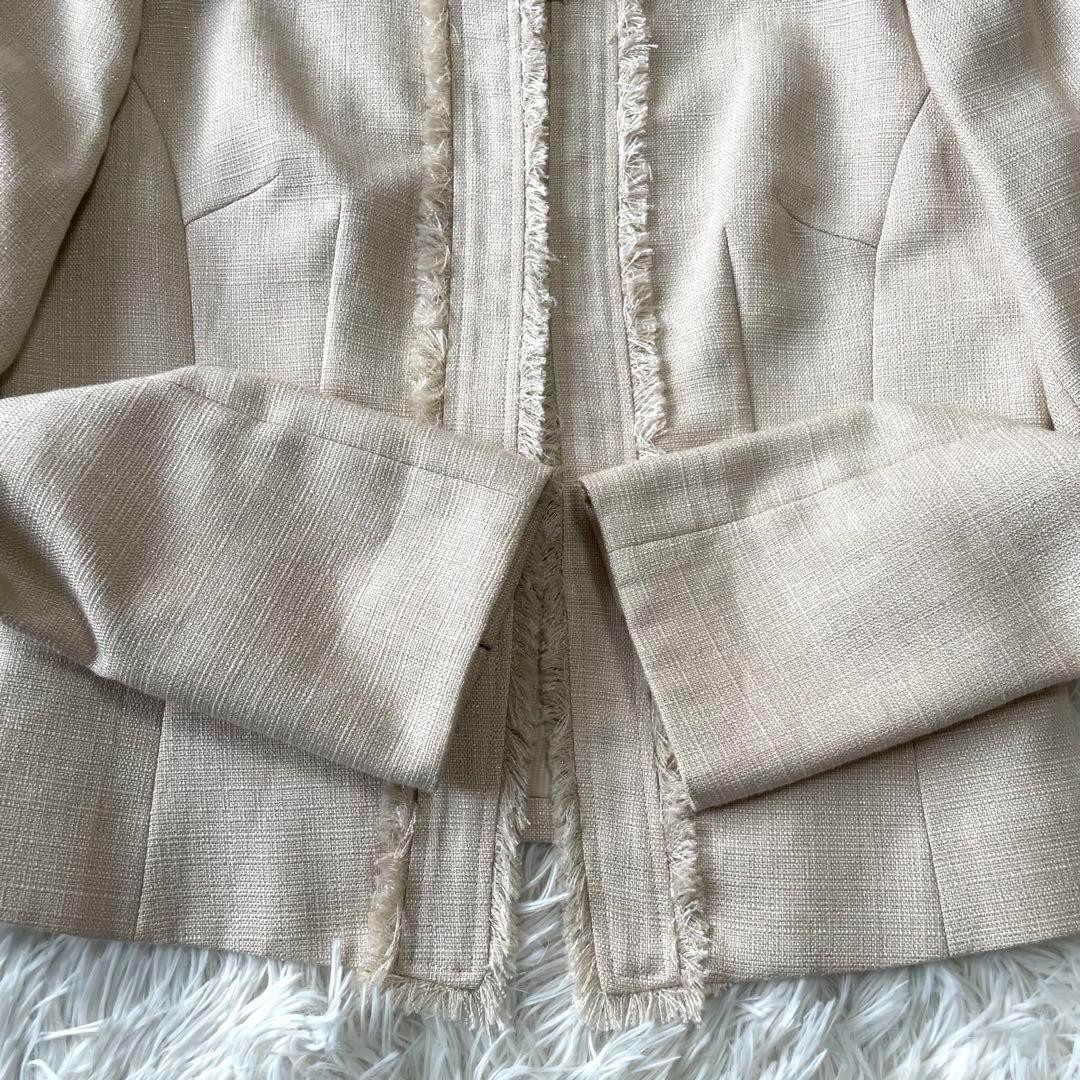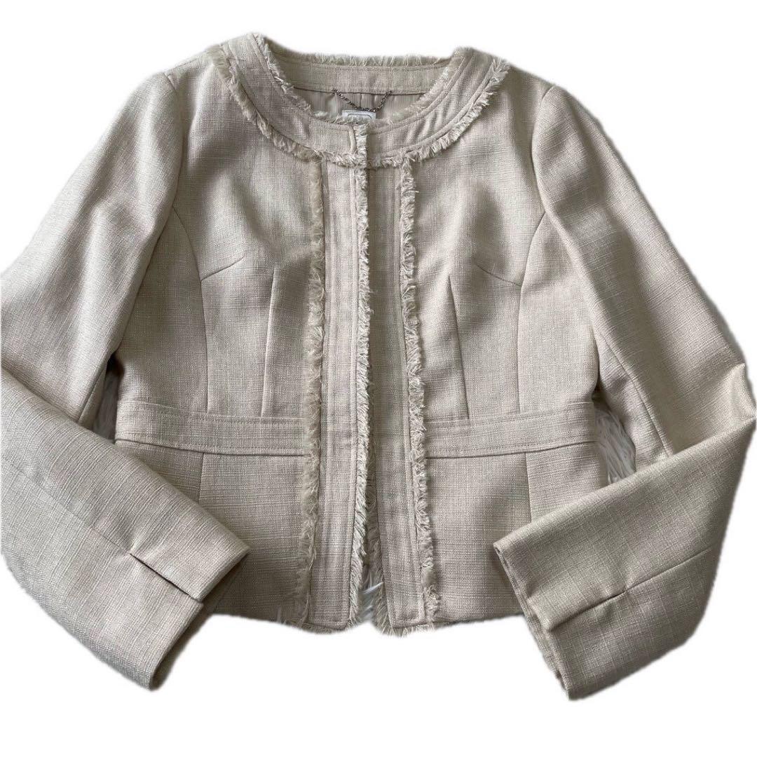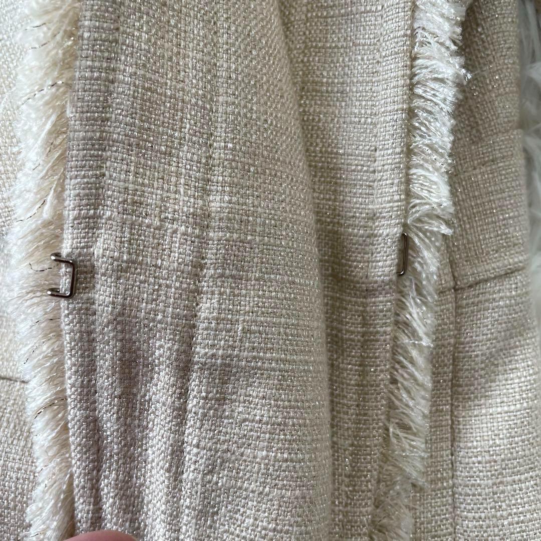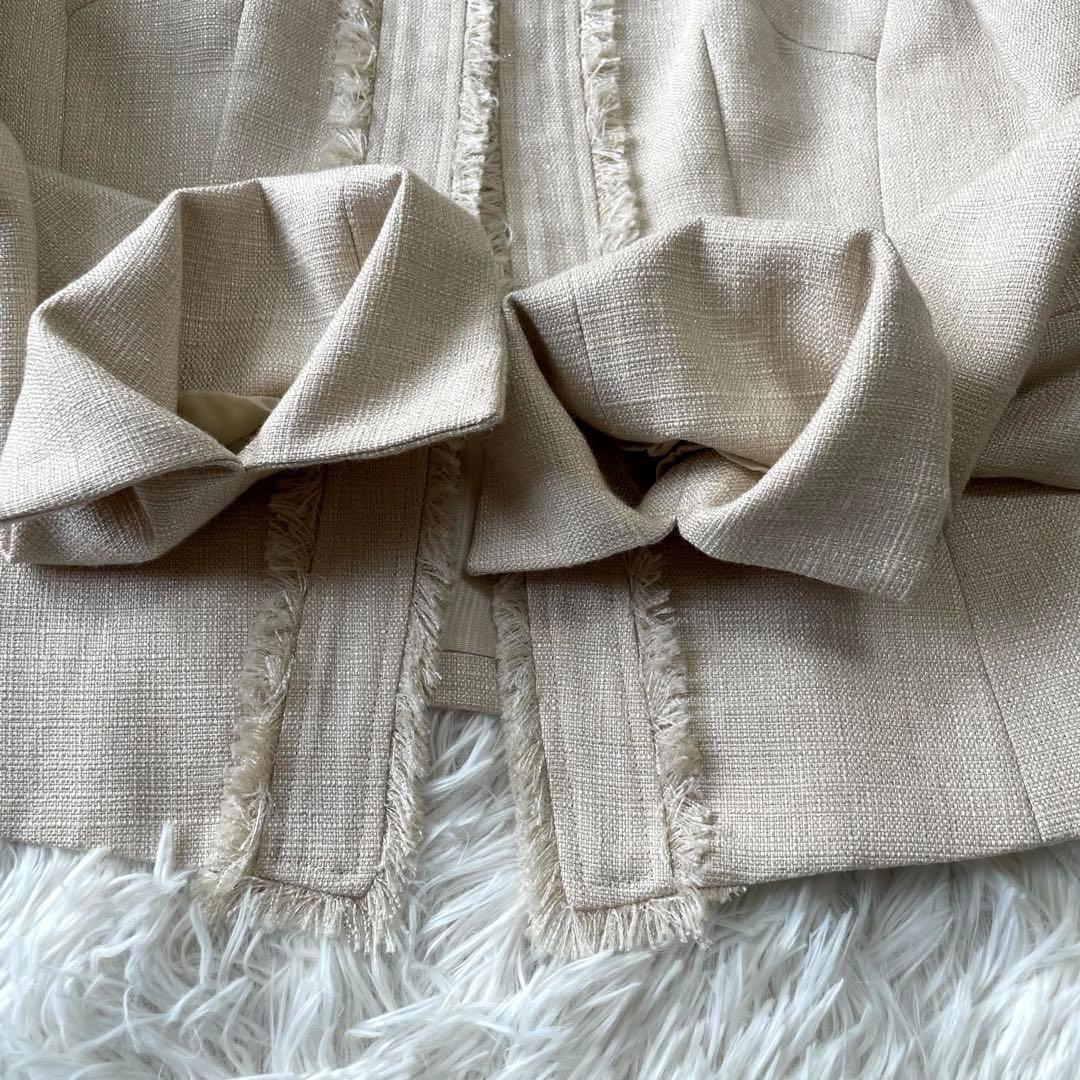 ツイード生地にラメ糸が散りばめられたノーカラー