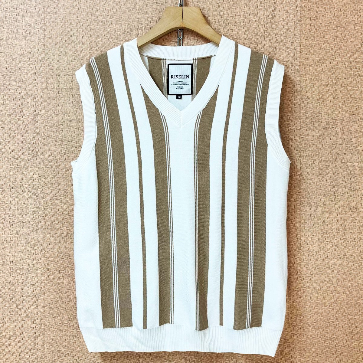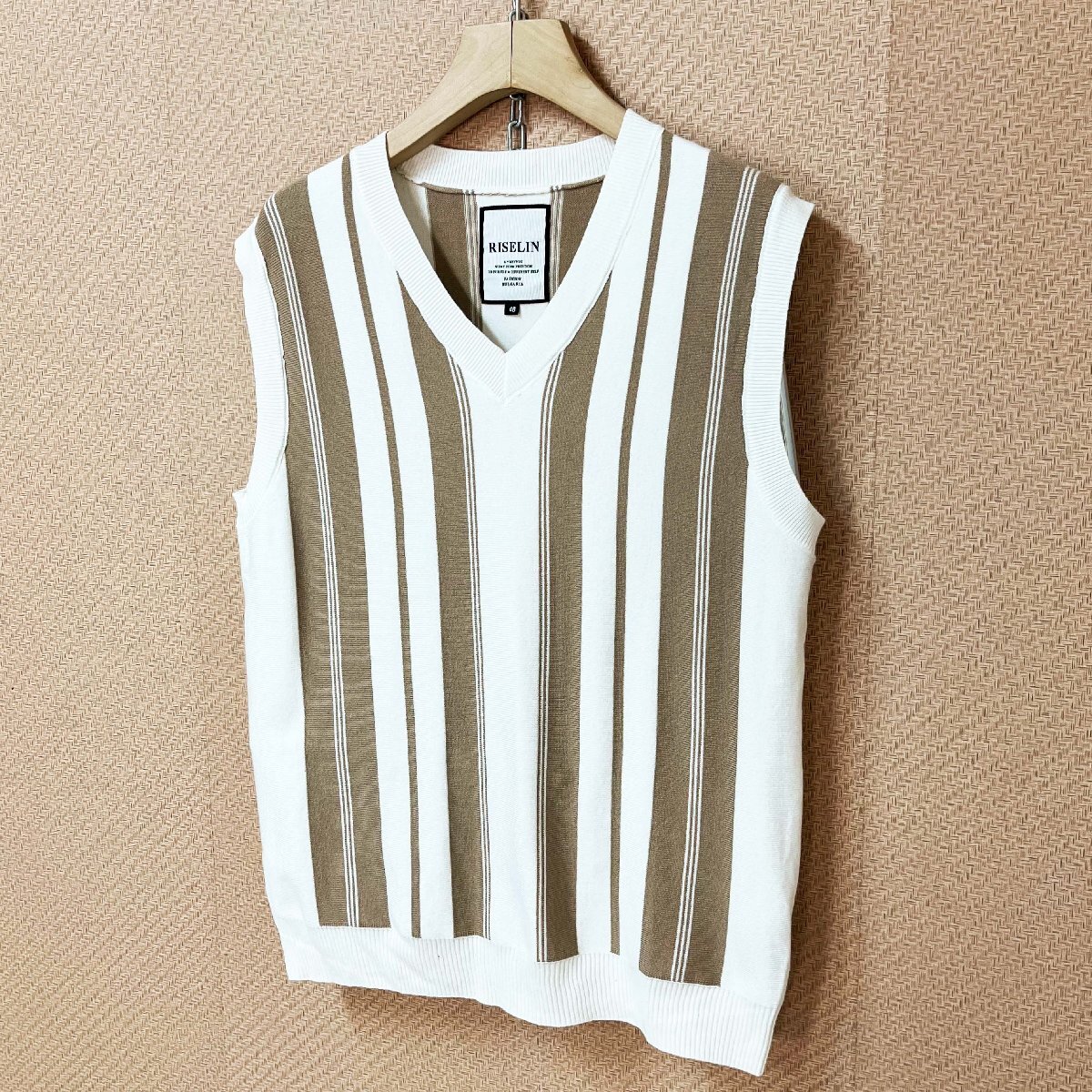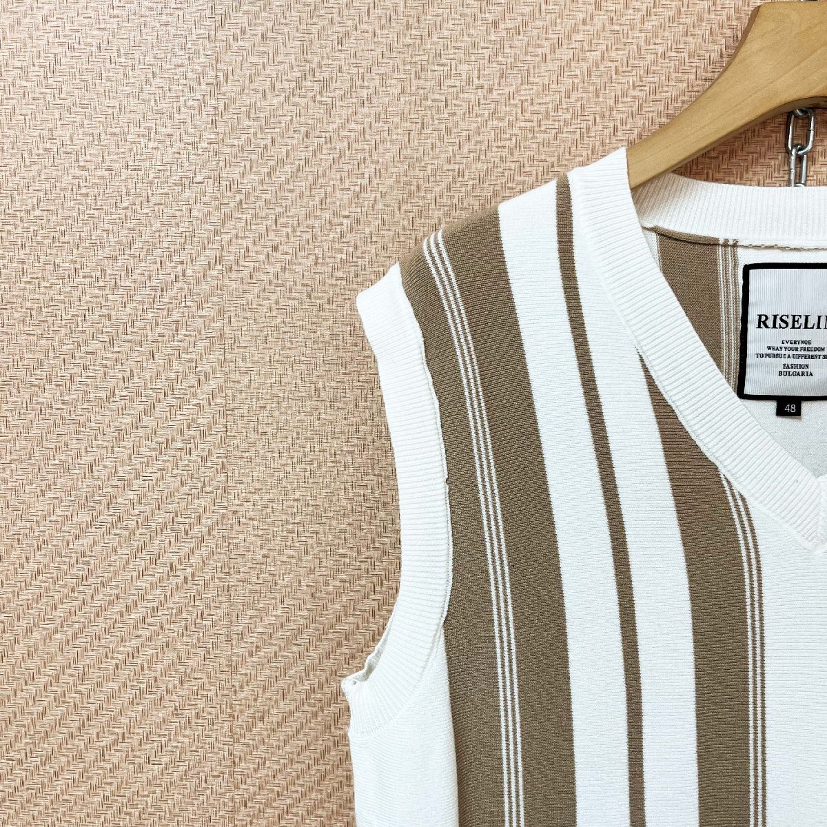 上級ヨーロッパ製※定価3万◆ブルガリア発※RISELIN ニットベスト ウール混 柔らか 防寒 重ね着 ストライプ柄 トップス カジュアル 秋冬 L/48サイズ