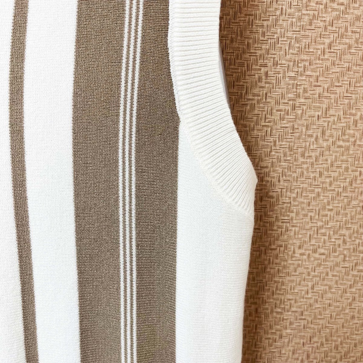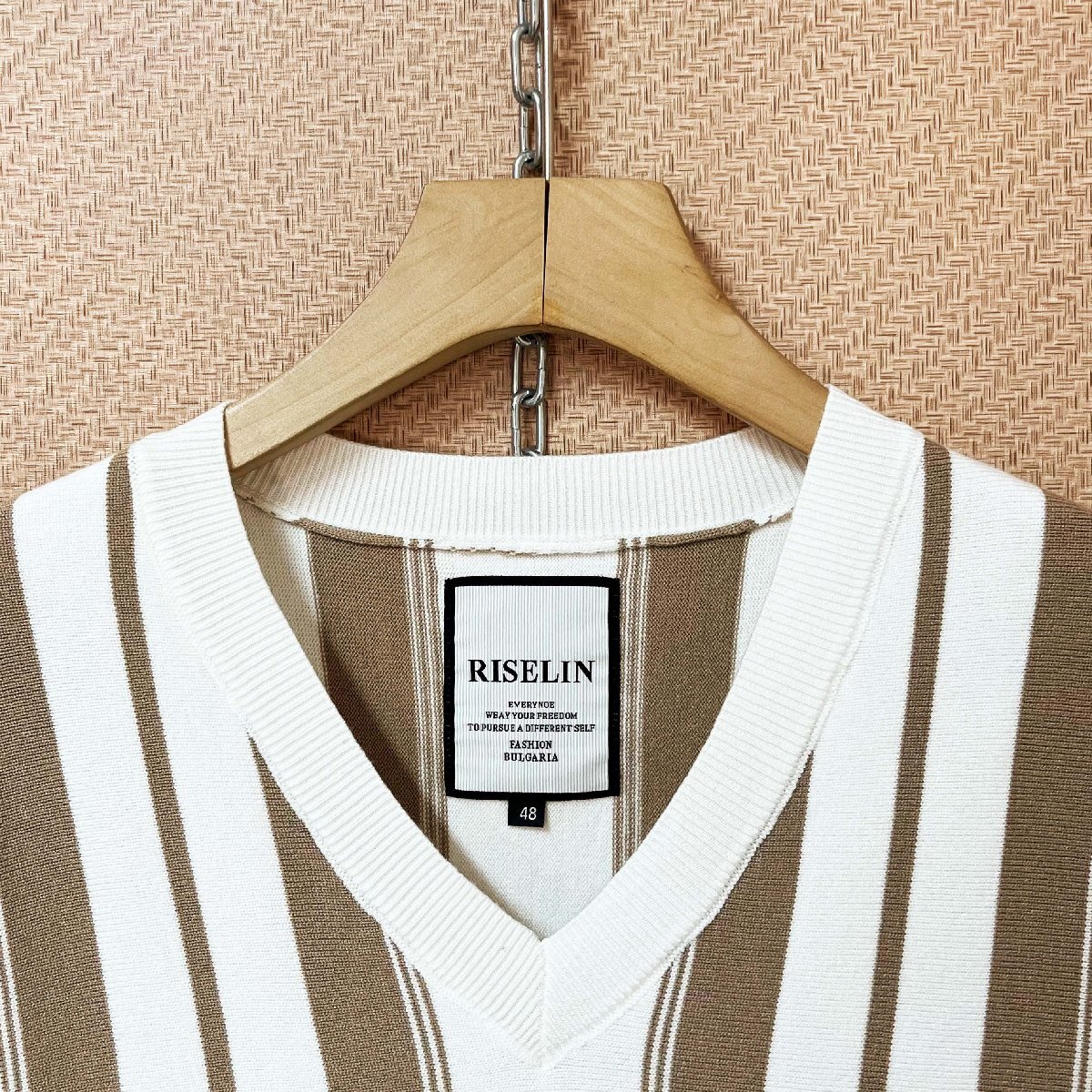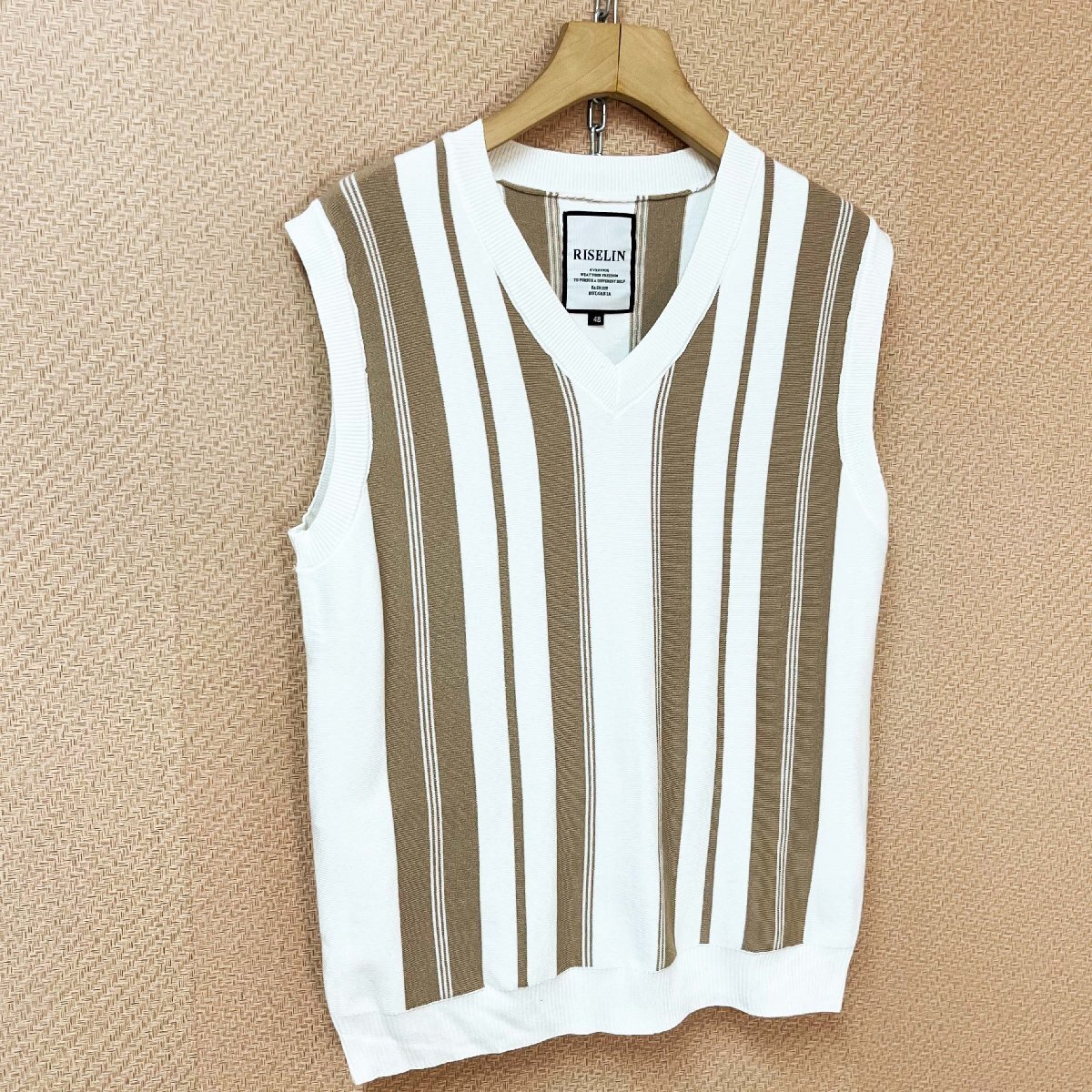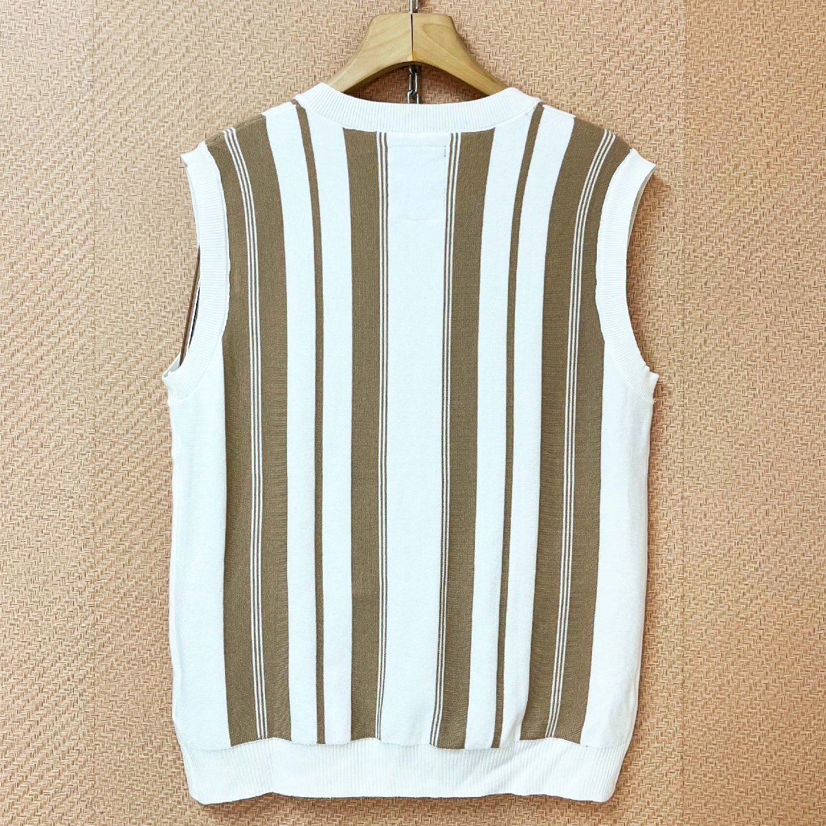 上級ヨーロッパ製※定価3万◆ブルガリア発※RISELIN ニットベスト ウール混 柔らか 防寒 重ね着 ストライプ柄 トップス カジュアル 秋冬 L/48サイズ