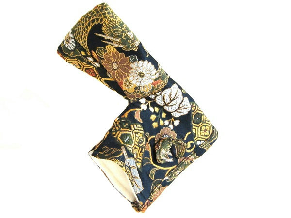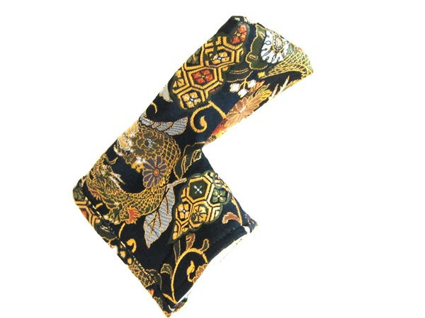 【パターピンタイプ】ゴルフクラブ用 西陣織 ヘッドカバー パターカバー ピンタイプ ハンドメイド 金襴 和風 龍柄 ドラゴン柄 紺系 3005 | |