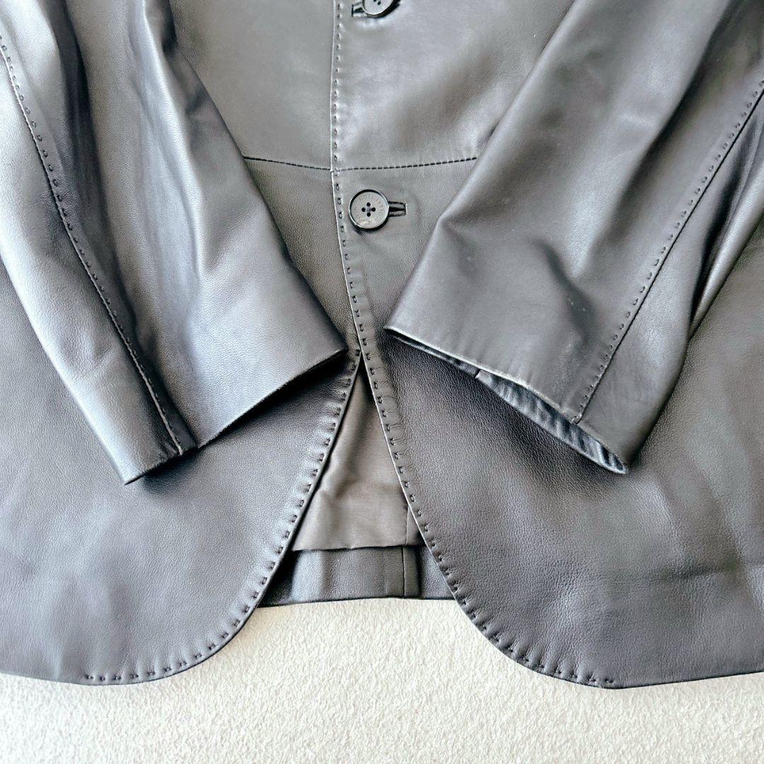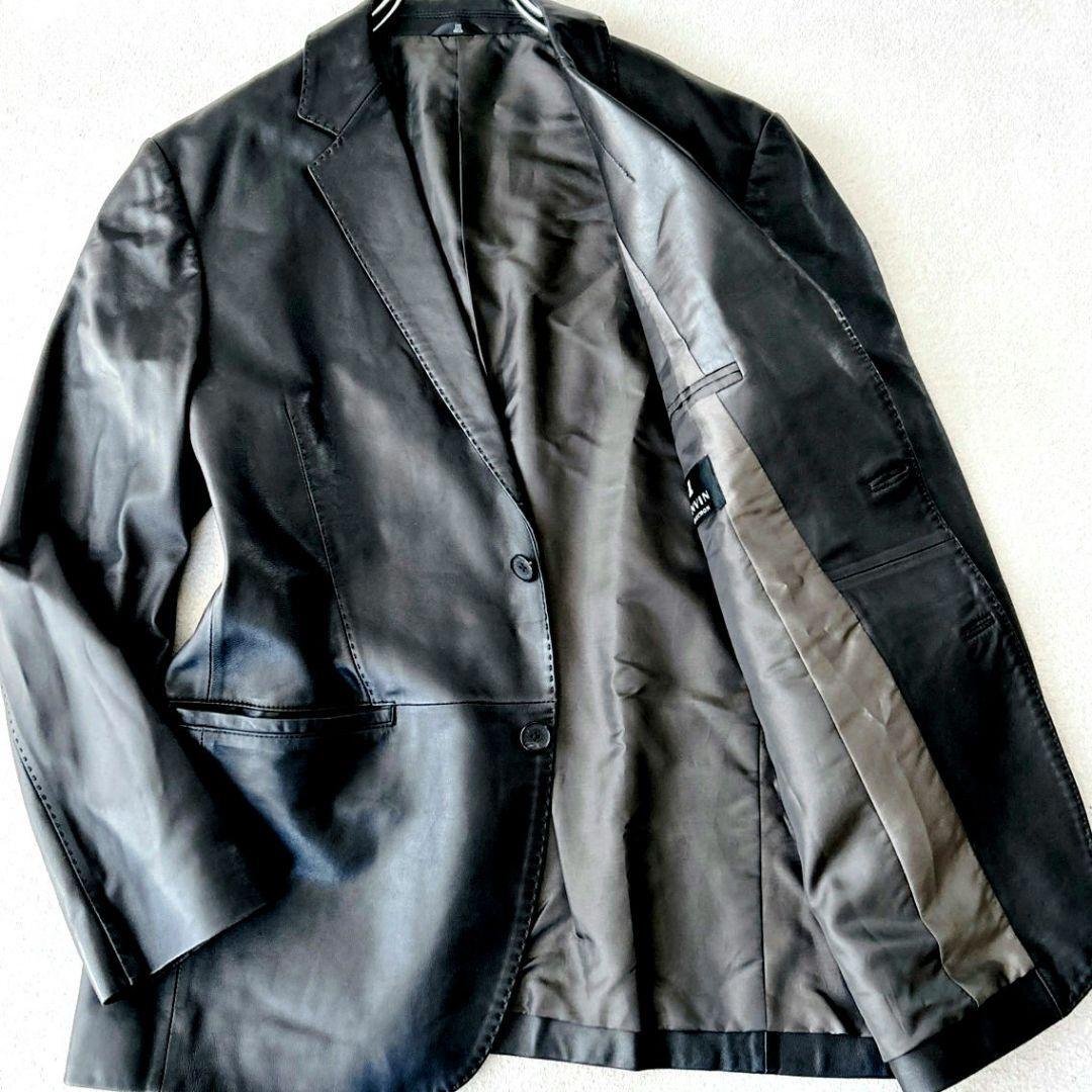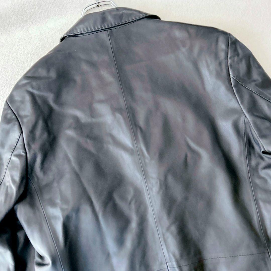 超弩級XL相当!!!やわらか羊革◎【LANVIN COLLECTION ランバンコレクション】ラムレザー テーラードジャケット ブラック 黒 50 ライダース