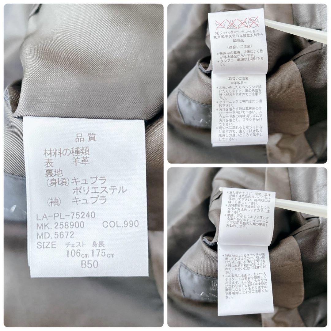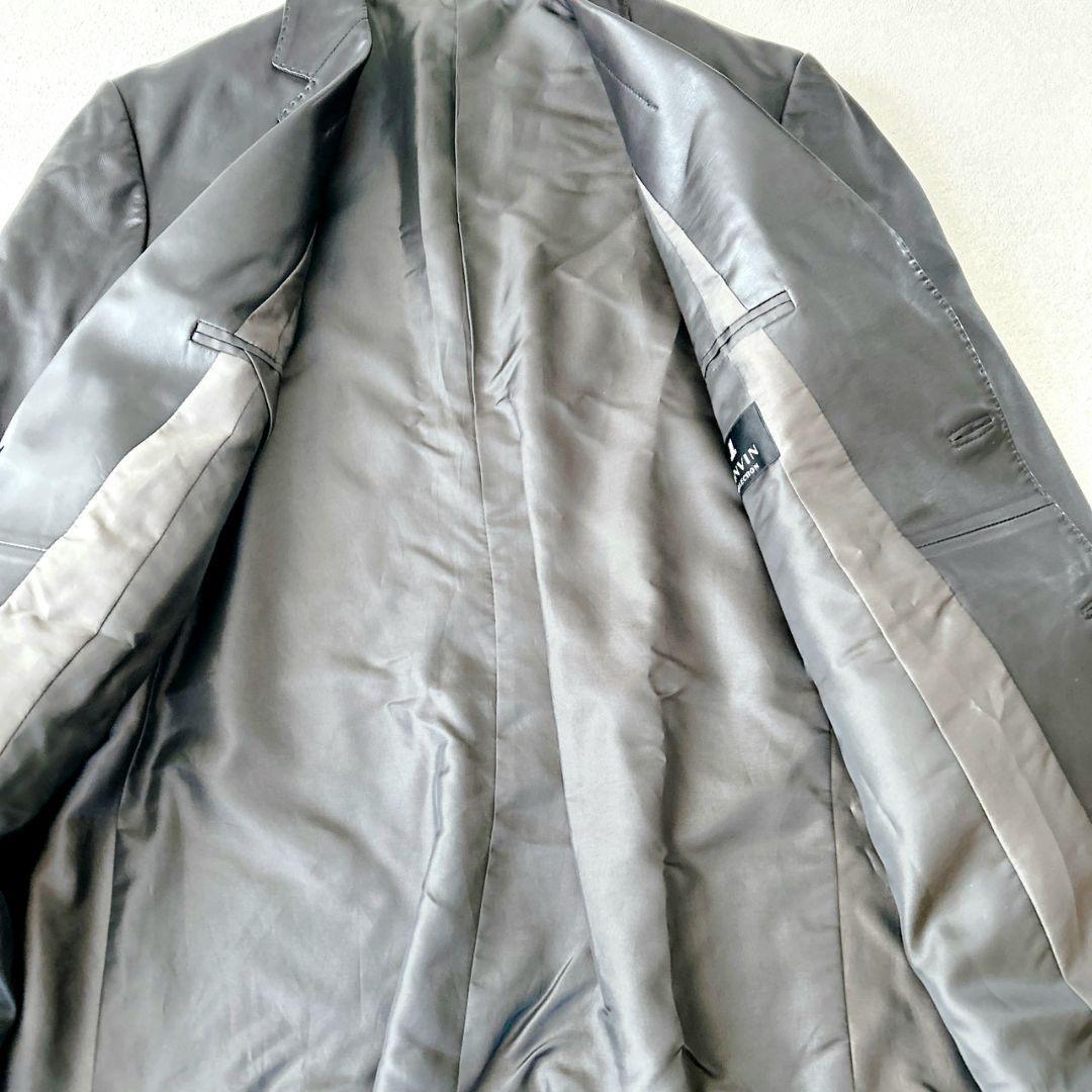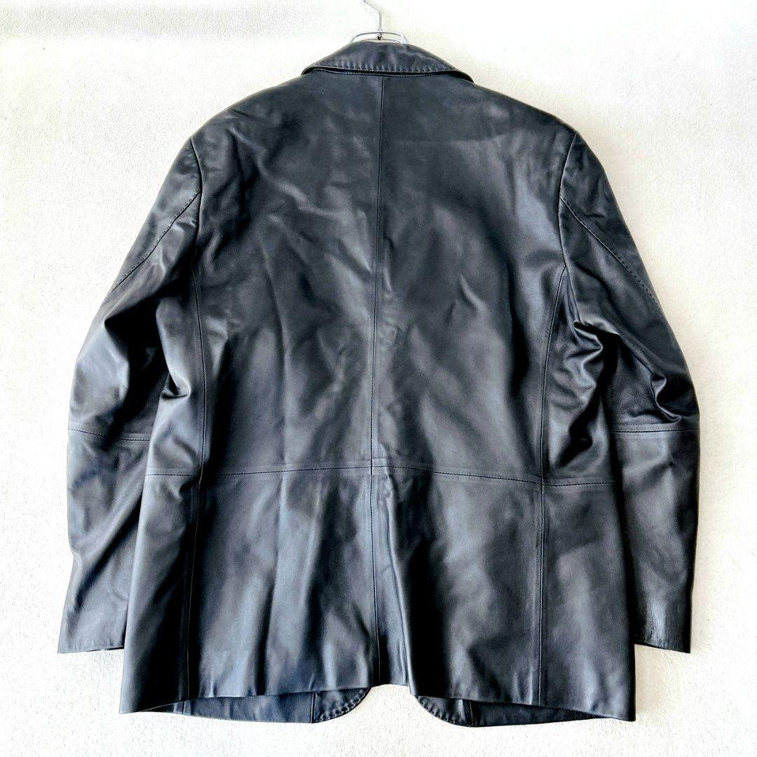 超弩級XL相当!!!やわらか羊革◎【LANVIN COLLECTION ランバンコレクション】ラムレザー テーラードジャケット ブラック 黒 50 ライダース