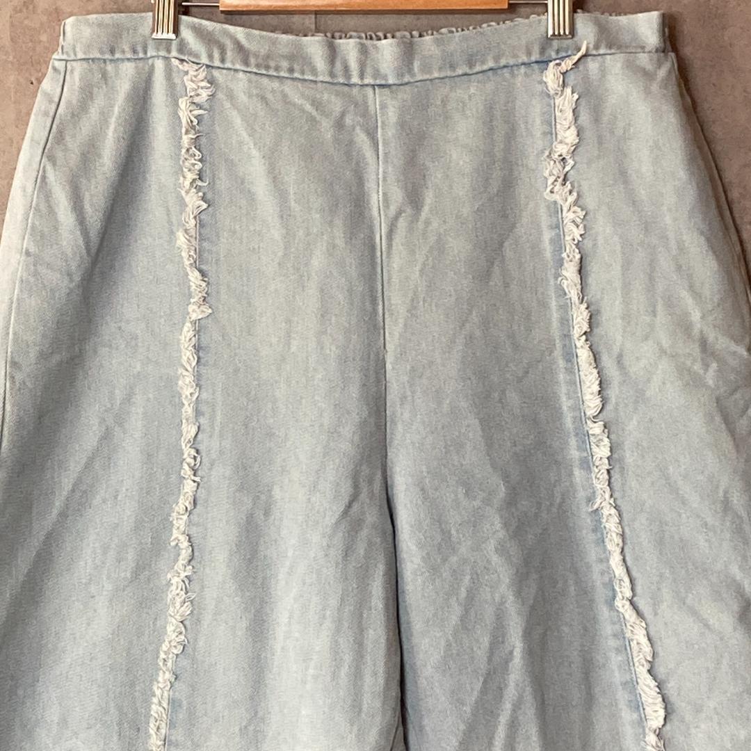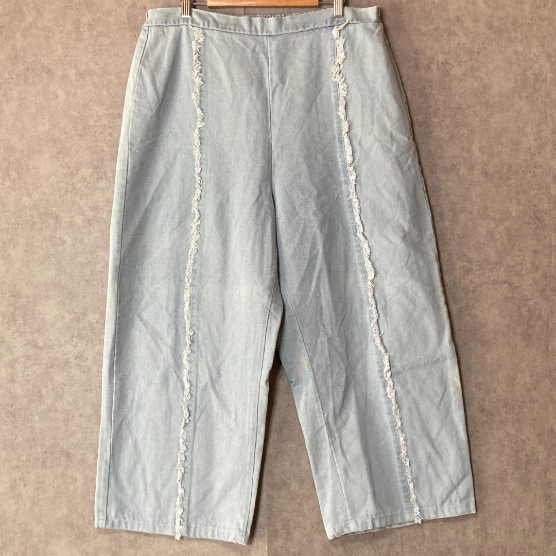 CHIP CLIP(4L)デニムワイドパンツ*フリンジ*ウエストゴム*ジーパン