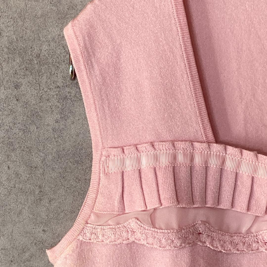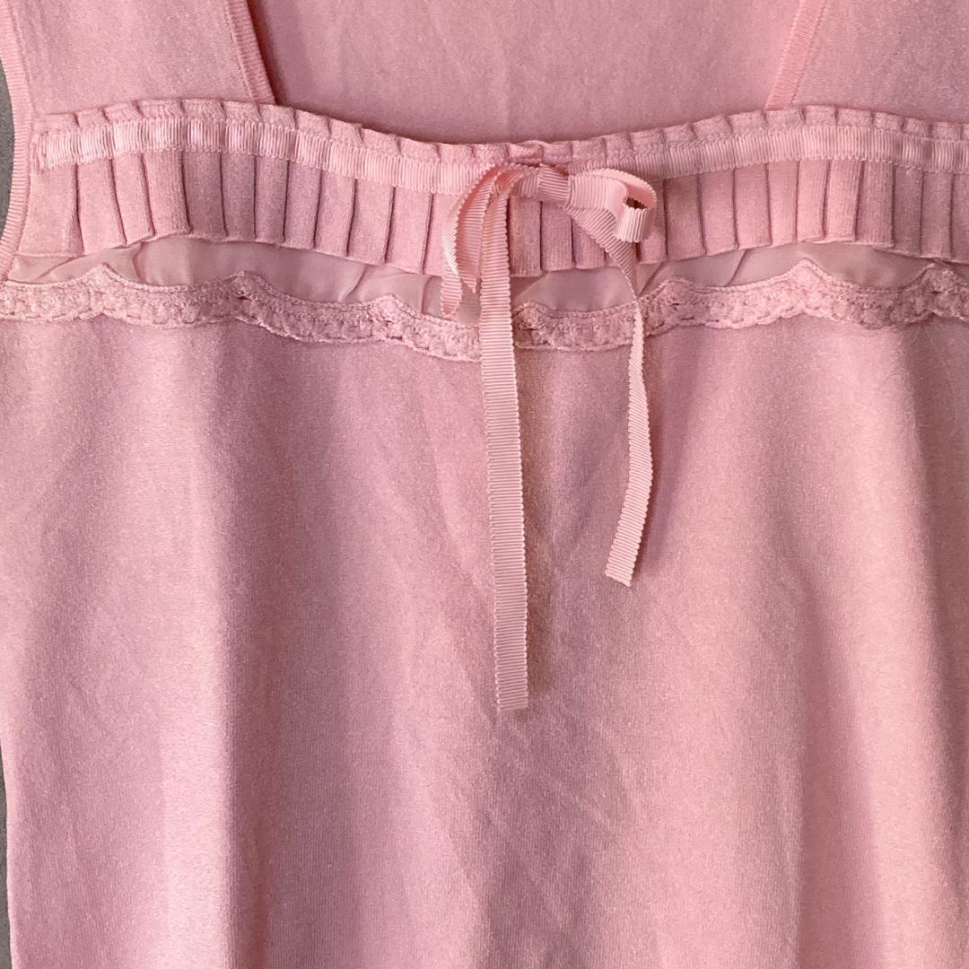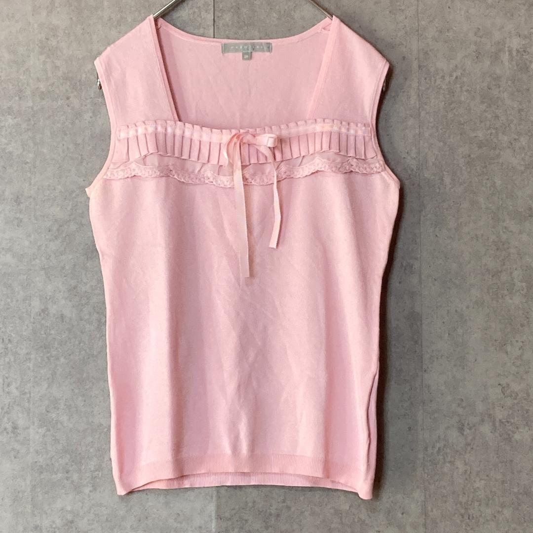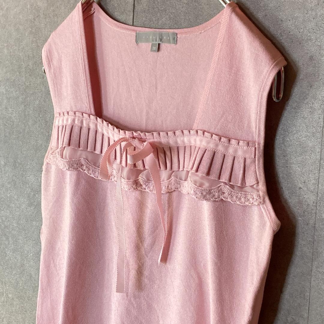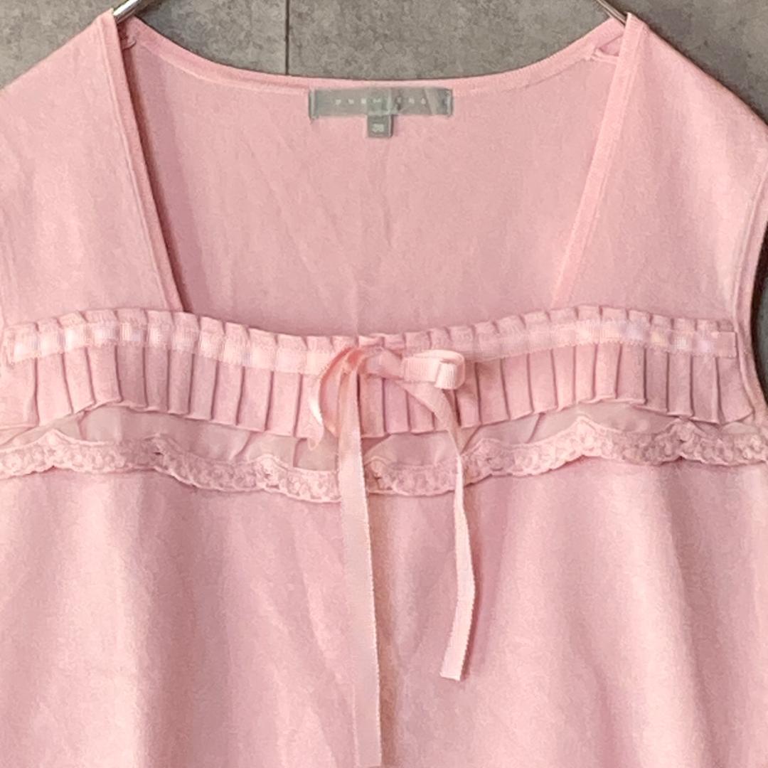 PREMIERE(38)タンクトップ*フリル*リボン*伸縮性*フェミニン*ピンク