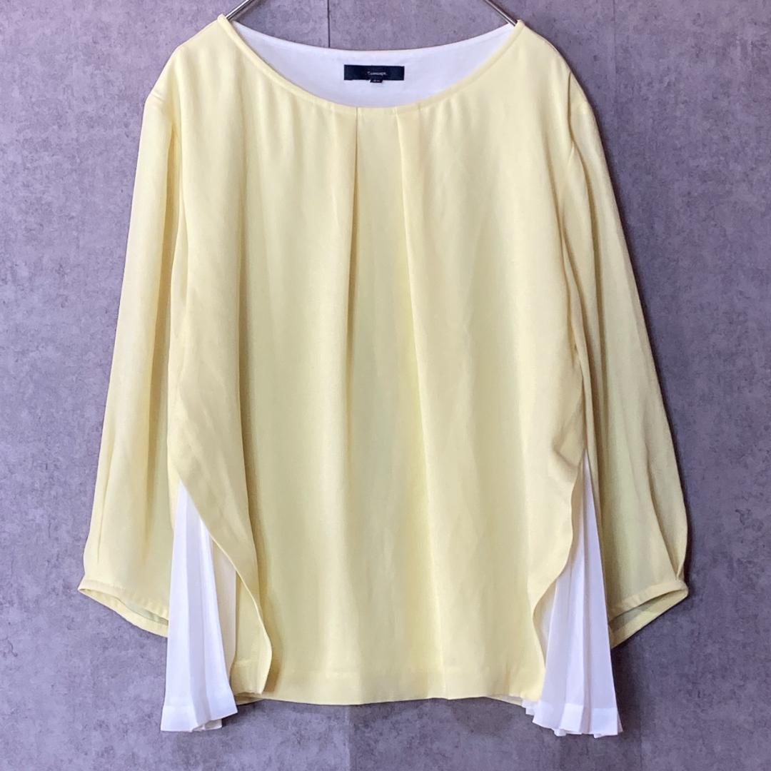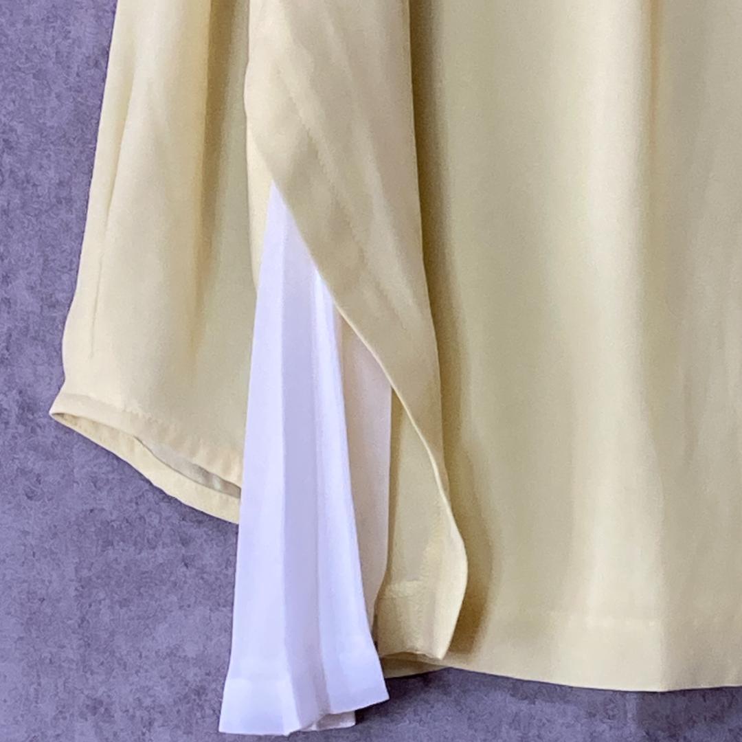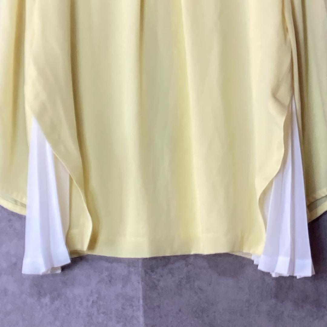 【美品】セブンアイディーコンセプト(40)シフォンブラウス*プリーツインナー*黄