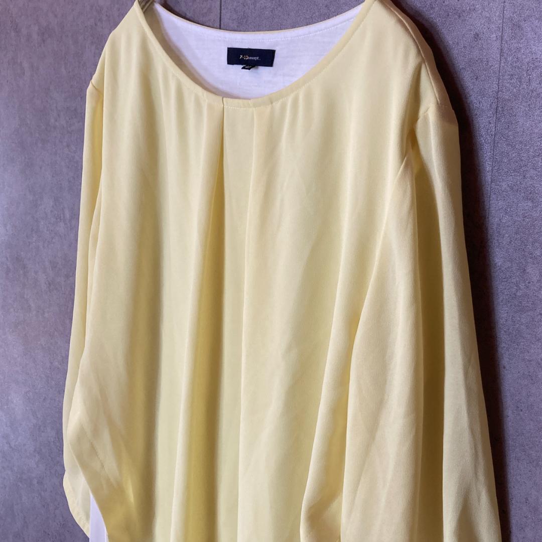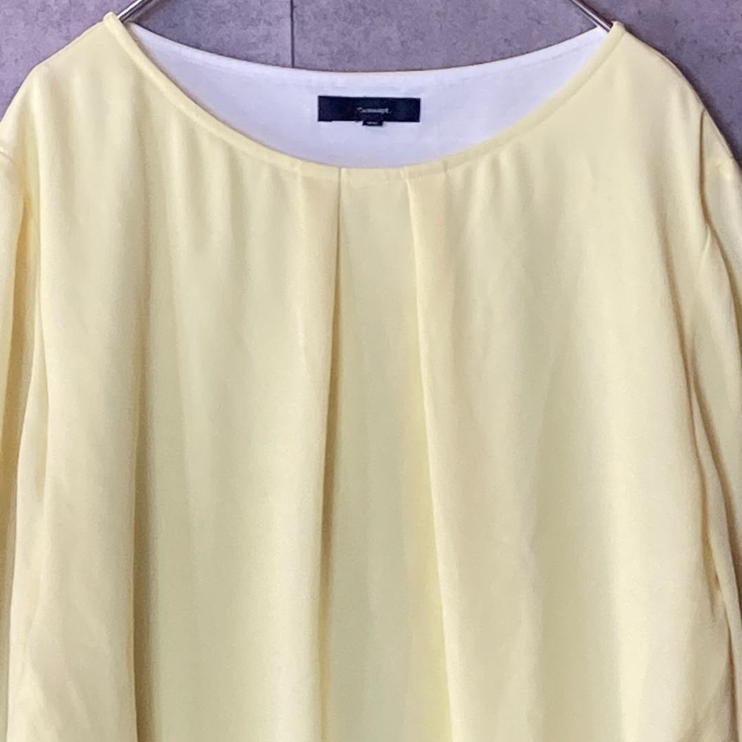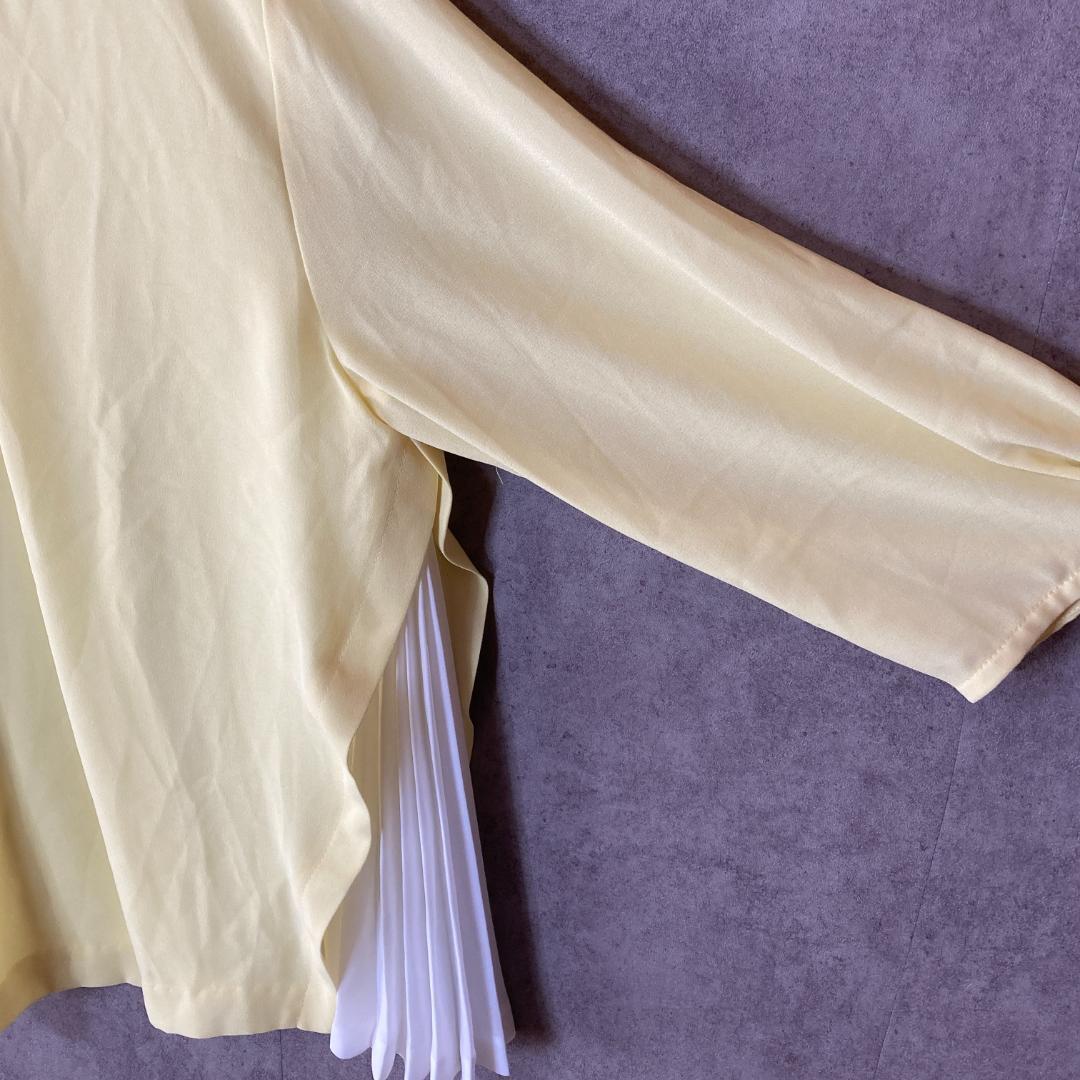 【美品】セブンアイディーコンセプト(40)シフォンブラウス*プリーツインナー*黄