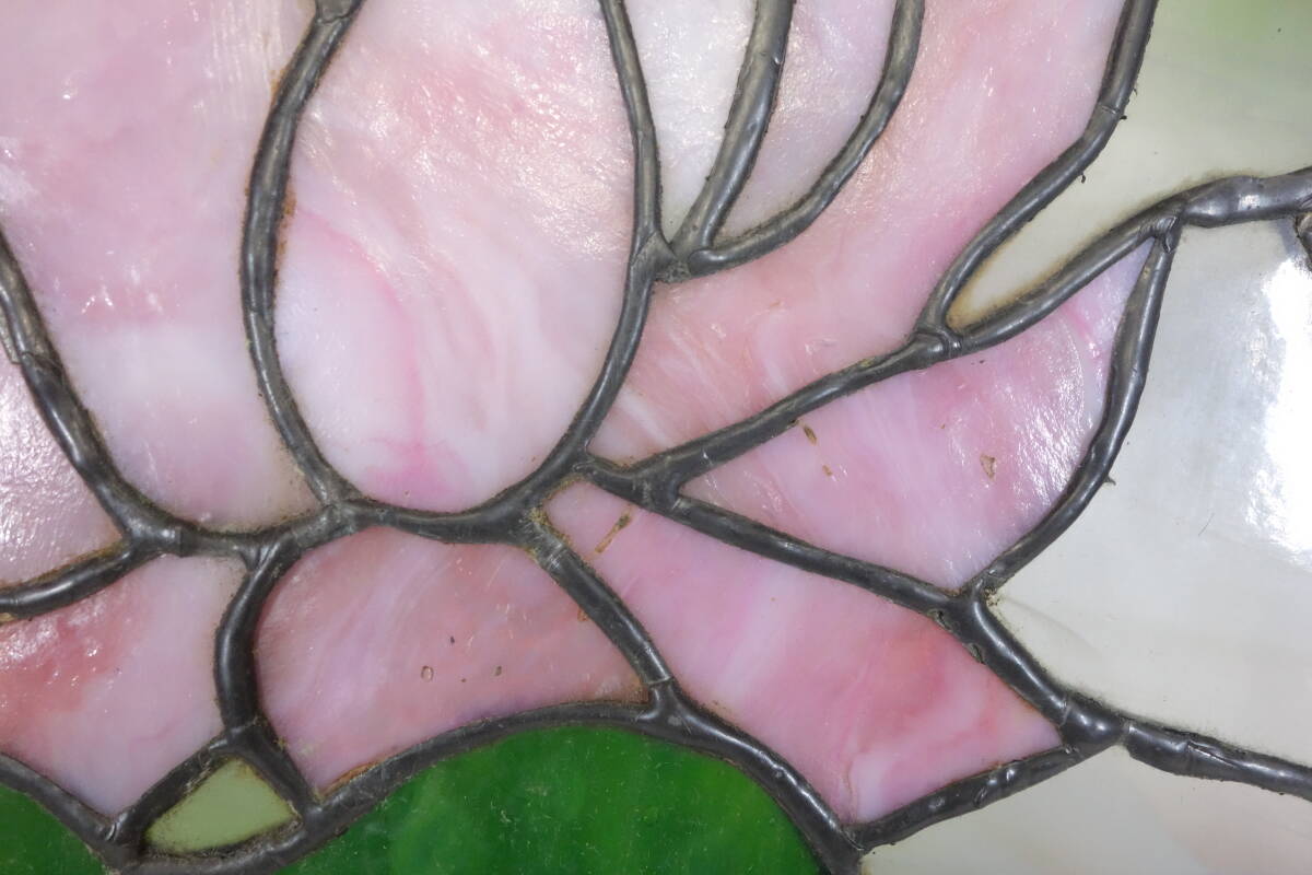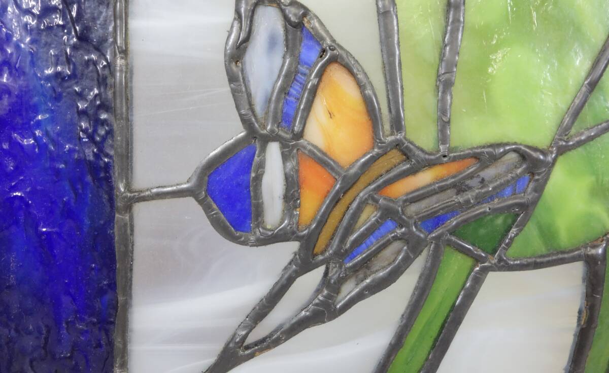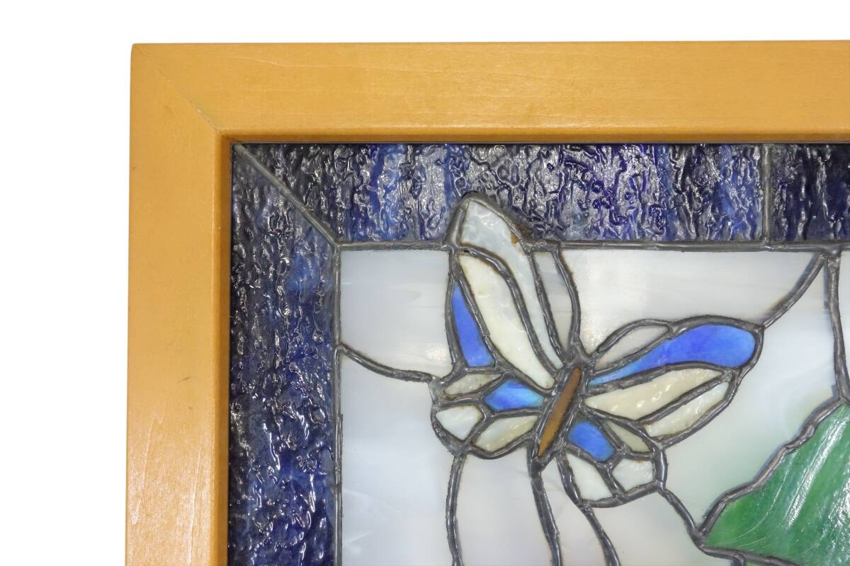 近代物 蓮と蝶々のステンドグラス ハンドメイド