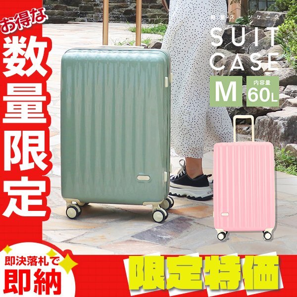 【限定セール】スーツケース 大容量60L Mサイズ 4~6泊 TSAロック 受託手荷物 キャリーケース キャリーバッグ おしゃれ 旅行用品 ピンク