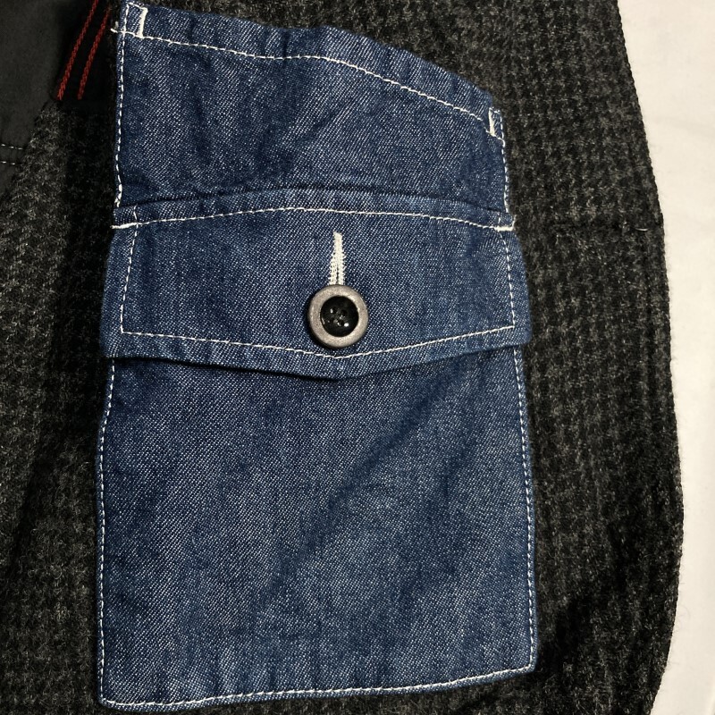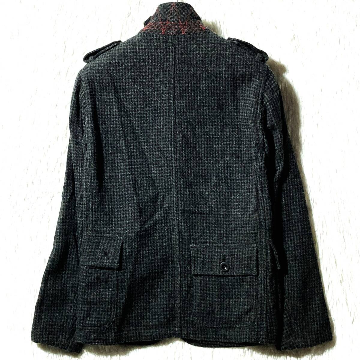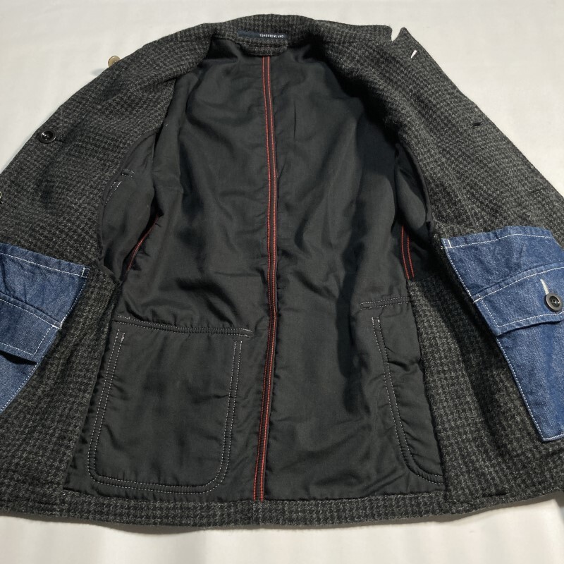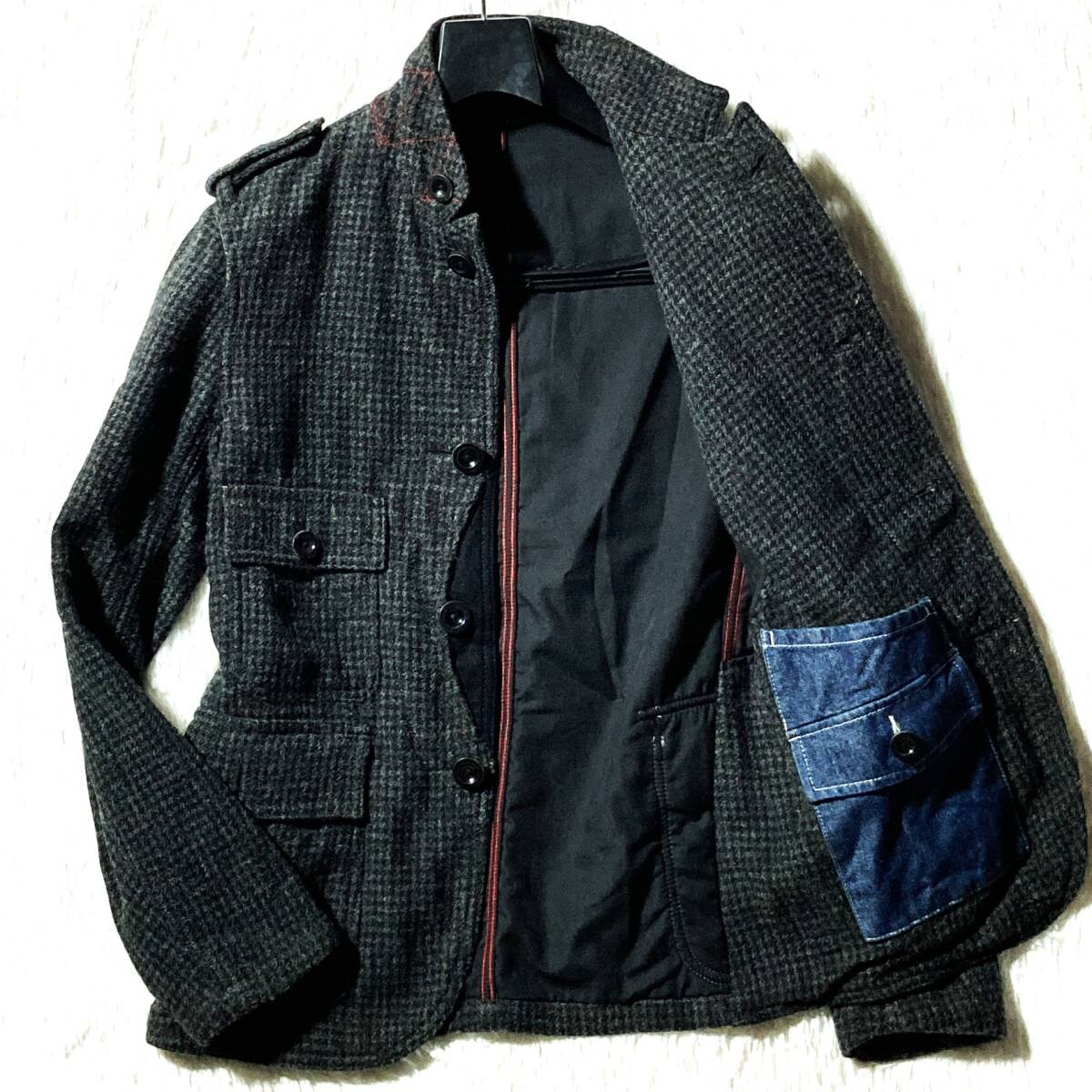 トゥモローランド★クラシックUKワーク★リバーシブル 千鳥格子ツイード ハンティングジャケット 裏デニムポケット&赤ステッチ 黒灰 S