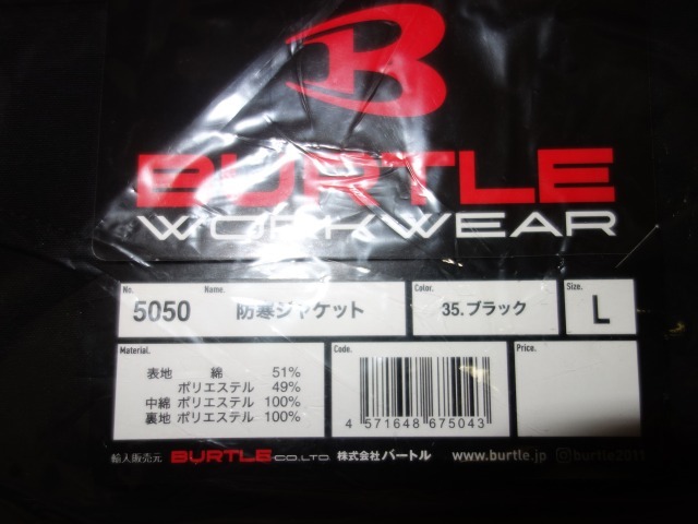 バートル 5050 L ブラック★防寒ジャケット★BURTLE