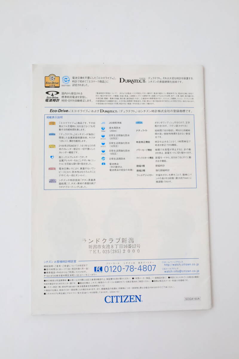 CITIZEN シチズン ウォッチコレクション 2004〜2005 カタログ EXCEED ATTESA XC STILETTO PRPMASTER FORMA WICCA CLETIA ALTERNA掲載