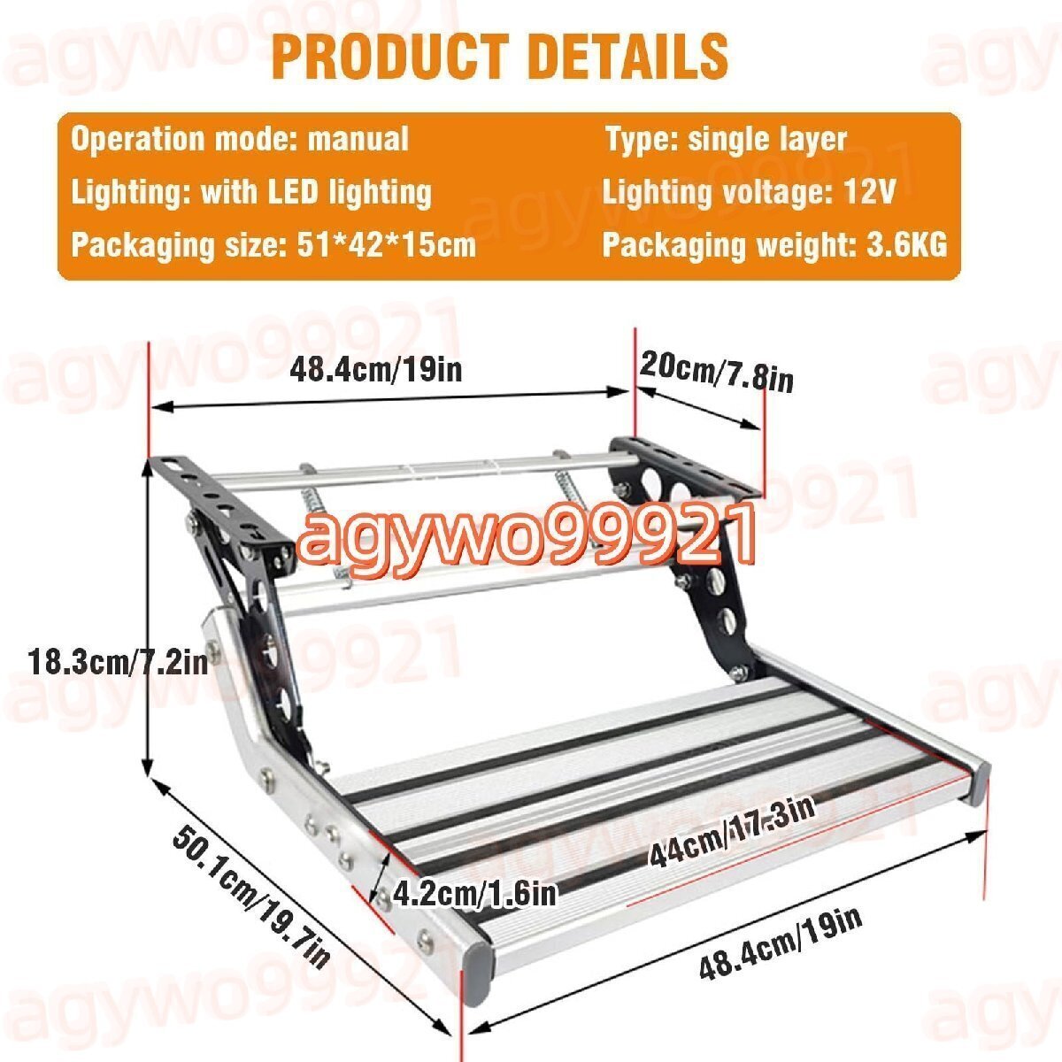 RVステップ、手動折りたたみ式の格納式RV階段、折りたたみ安定したはしごモバイルホームステップスツール、330ポンドの荷重容量、肥厚したスチールプレート、旅行キャンプトレーラー用の滑り止めステップ Electric layer with light