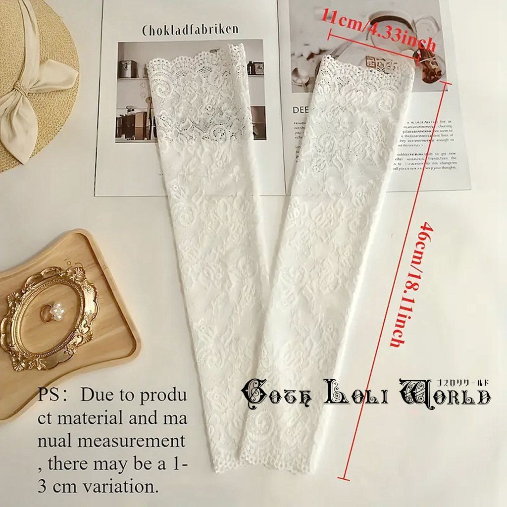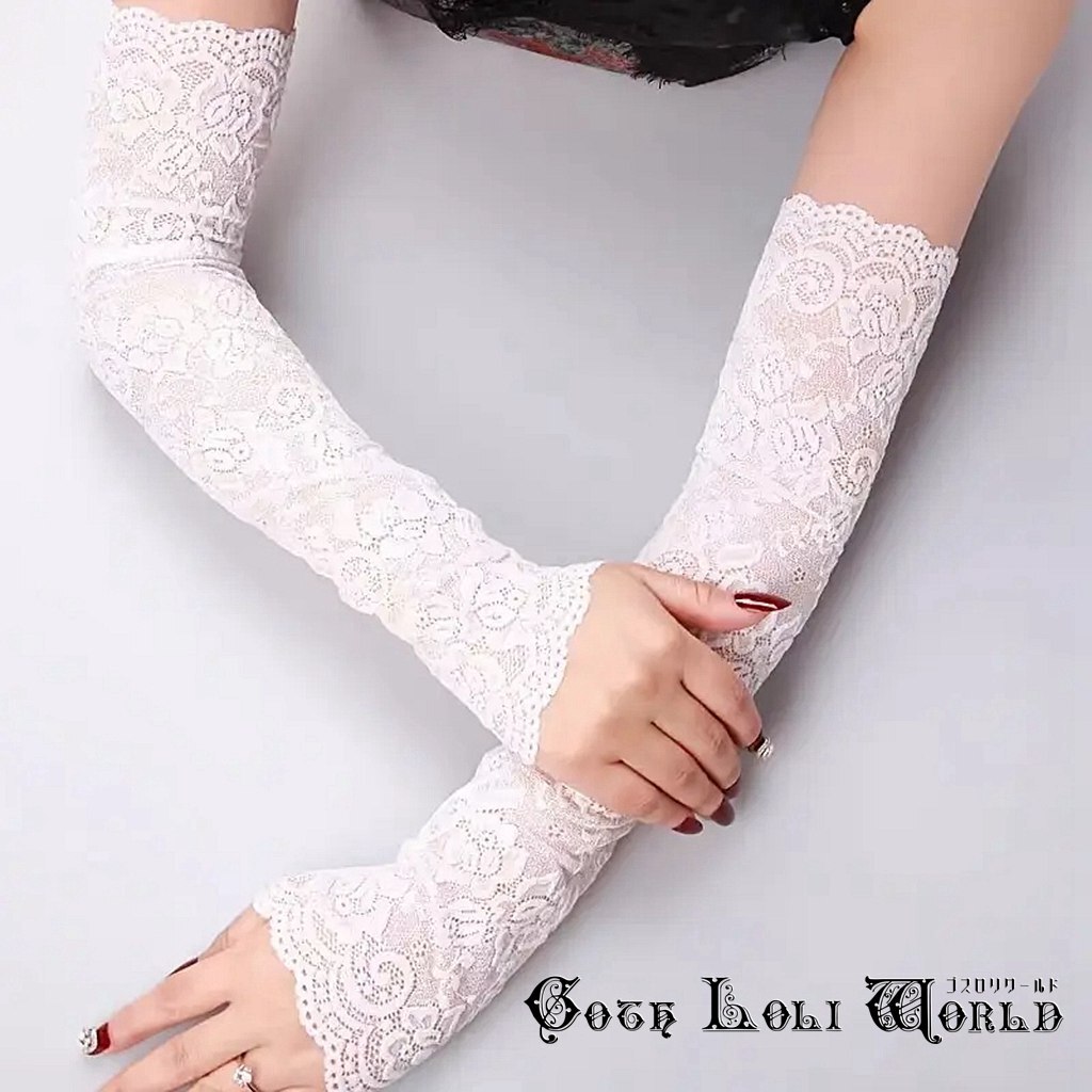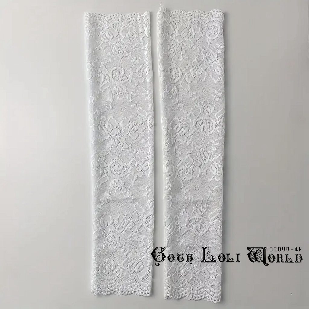 即納 CE-AGL005WH レース 刺繍 アームウォーマー アームカバー 手袋 白色 ロリィタ ロリータ 地雷系 日焼け防止 日よけ