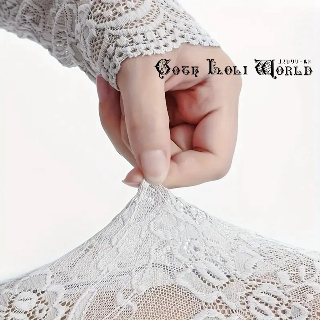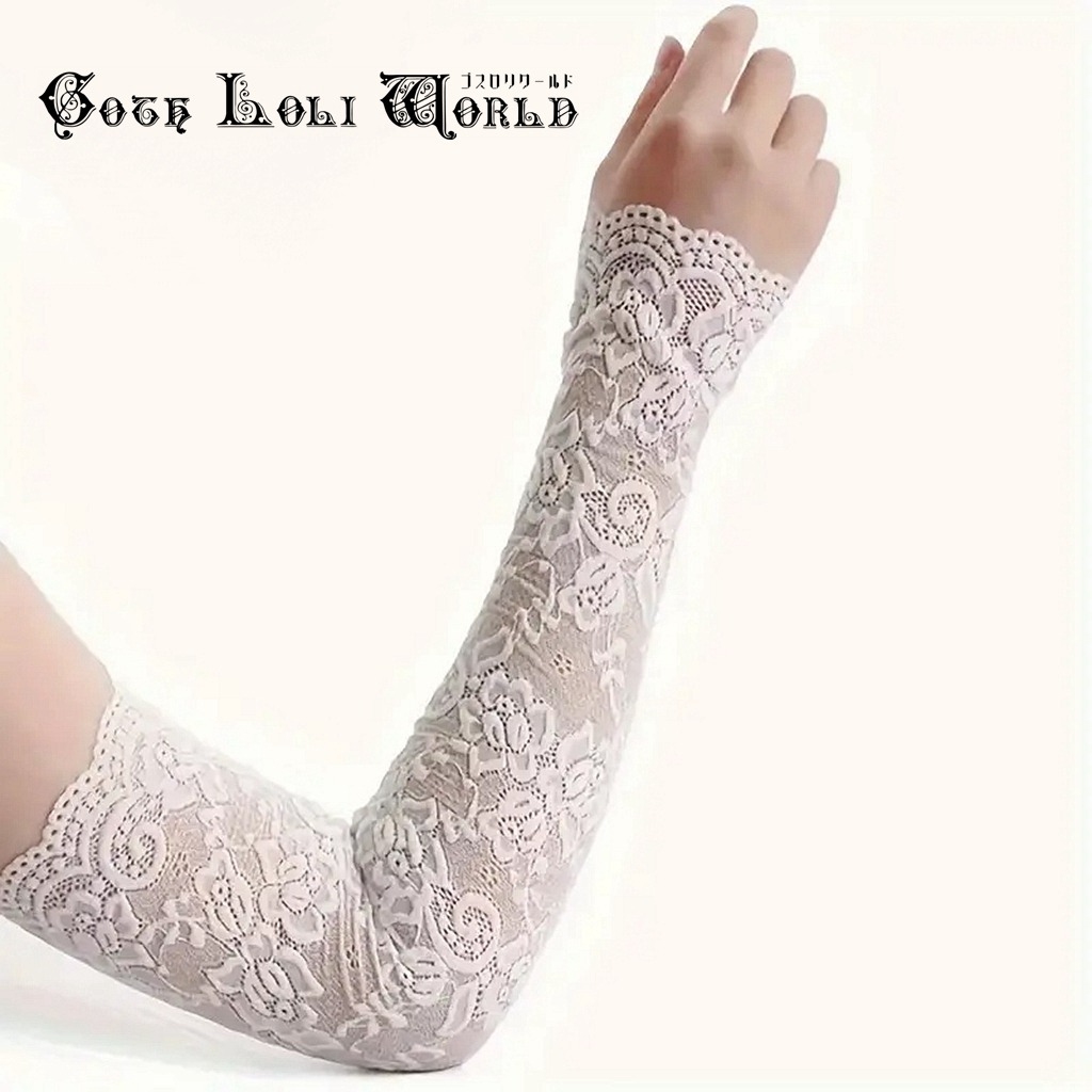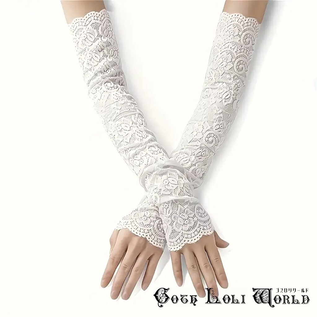 即納 CE-AGL005WH レース 刺繍 アームウォーマー アームカバー 手袋 白色 ロリィタ ロリータ 地雷系 日焼け防止 日よけ