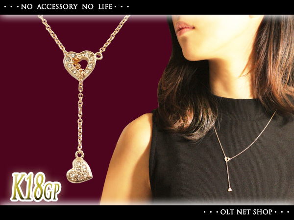新品/ネックレス/K18GP/ハート/Y字/ラリエット/ダイヤ/18金/ピンクゴールド/レディース/送料無料/ラリアット/シンプル/上品/女性/CZ/PG