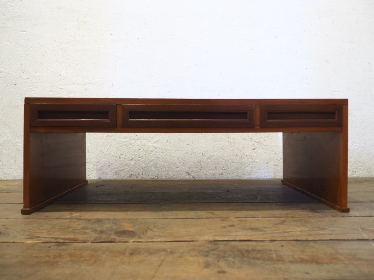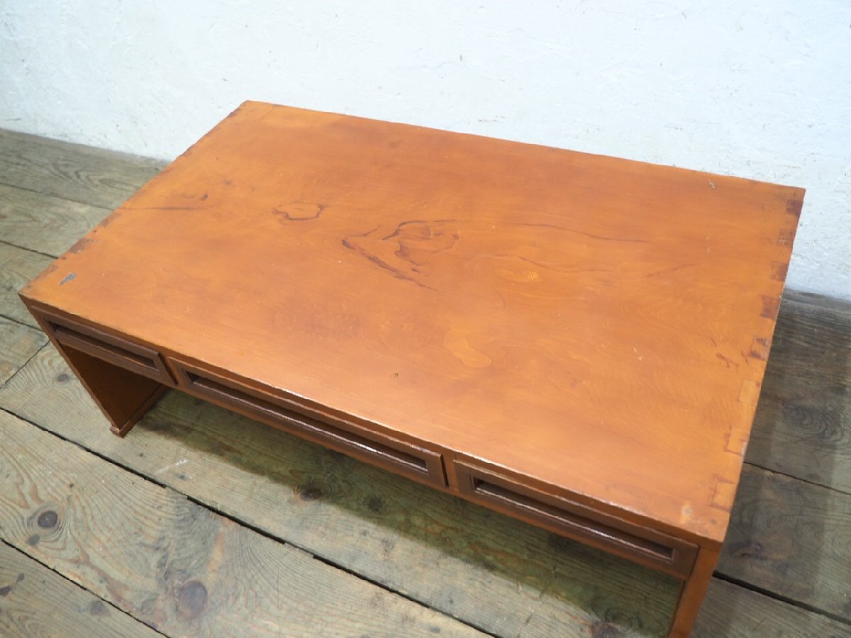 タS0675◆天板W88cm×D50,5cm◆引き出し3杯◆一枚板のレトロな古い木製文机◆デスク ローテーブル 座卓 展示台 ヴィンテージL笹4
