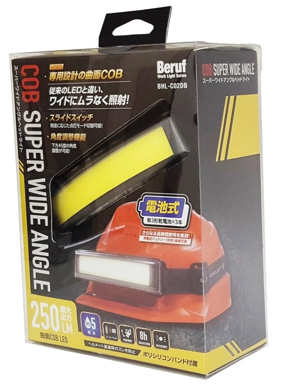 Beruf(ベルーフ) スーパーワイドアングル ヘッドライト BHL-C02DB 87671 250LM 電池式 イチネンアクセス