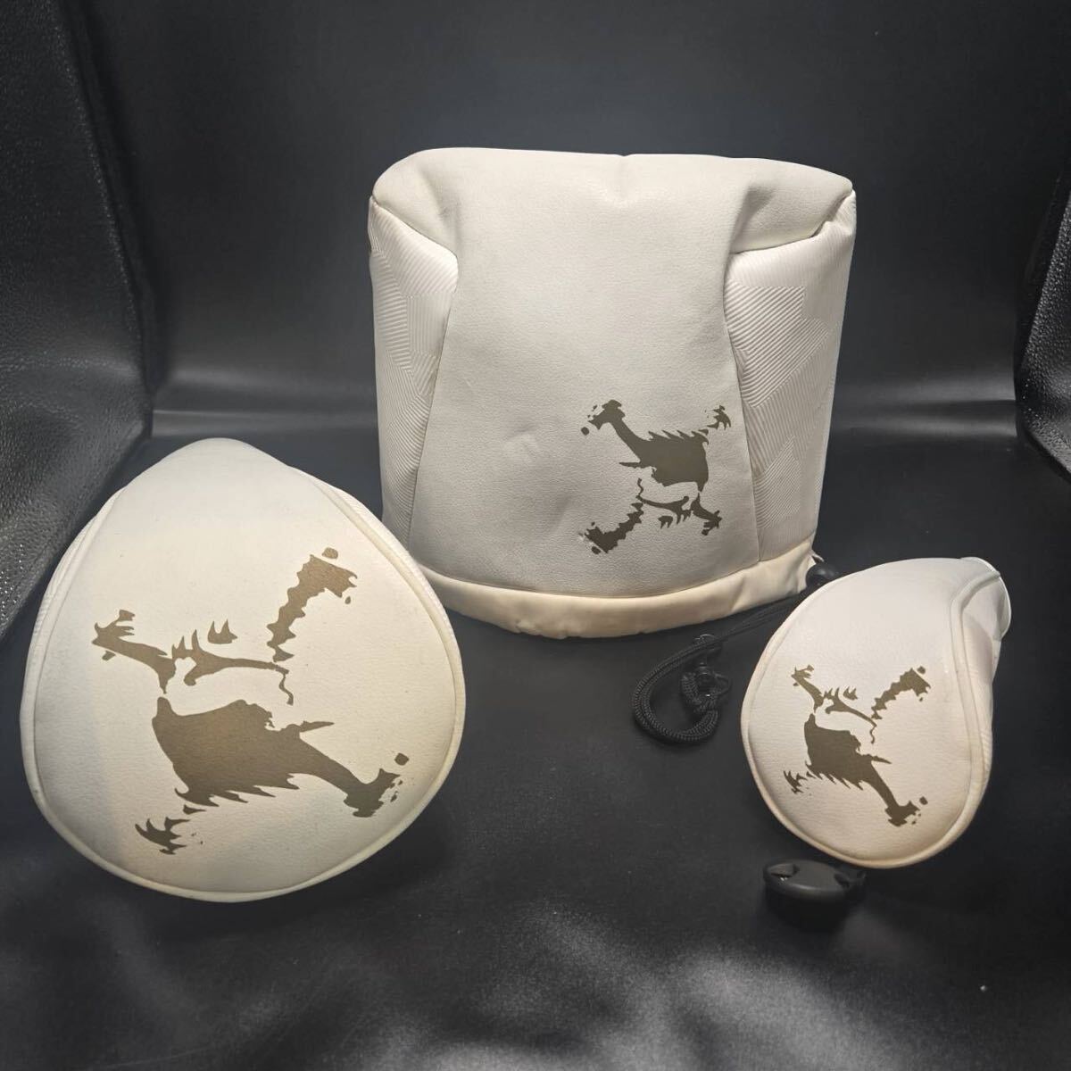 【中古】OAKLEY オークリー ゴルフ ヘッドカバー 3点セット ドラゴンロゴ ホワイト 汚れ・スレあり 現状品