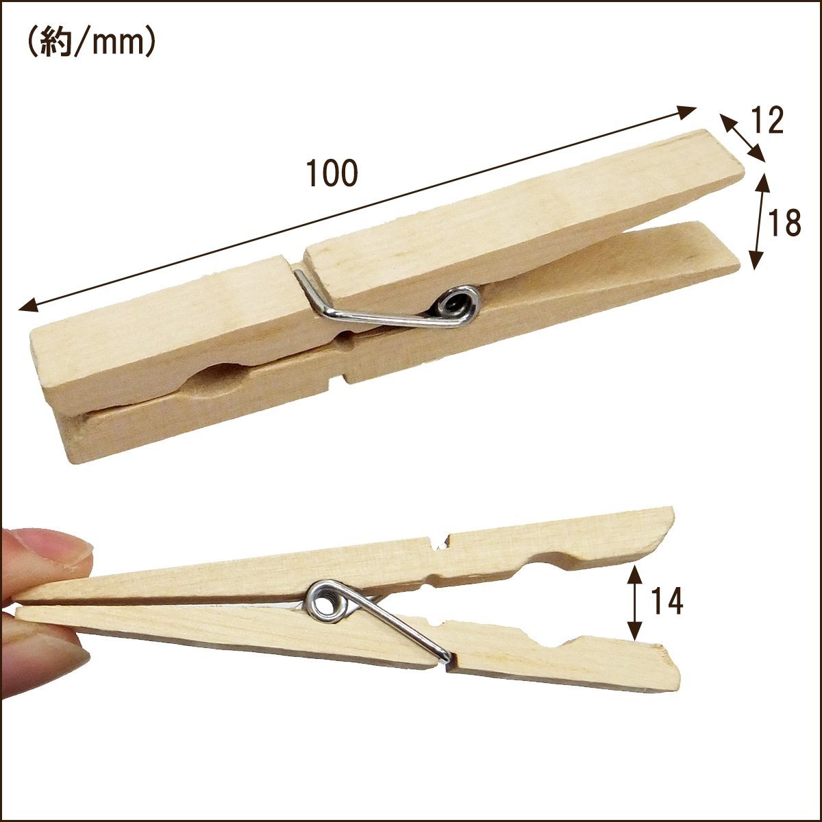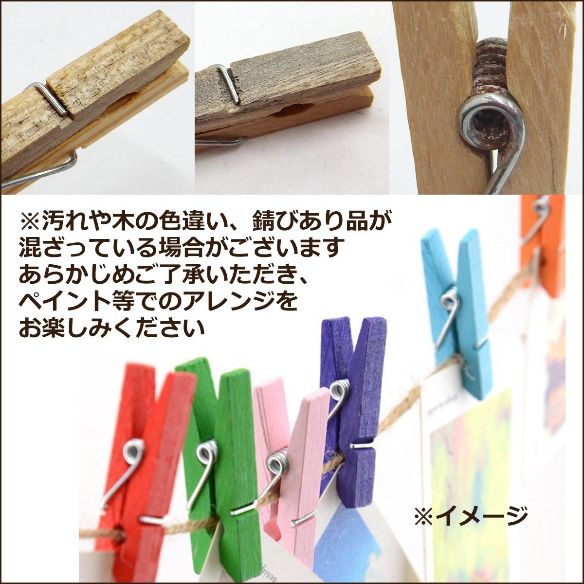 ウッドクリップ 24個セット (大) 10cm 木製洗濯ばさみ クロスピン メール便 送料無料/21ш