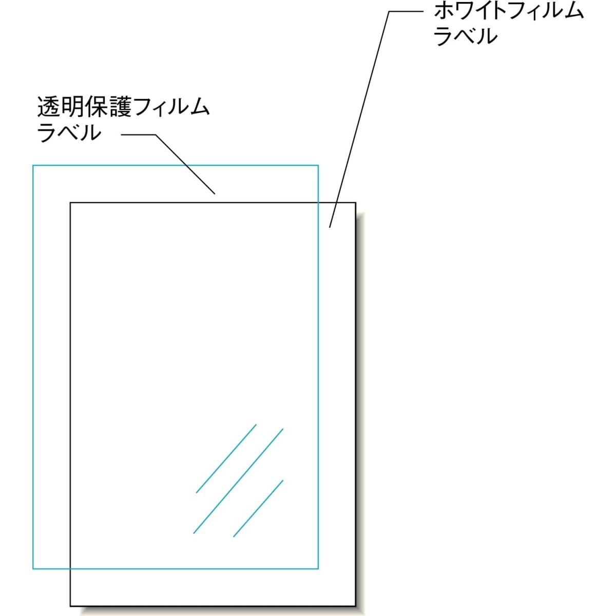・強粘着タイプ 印刷用ホワイトフィルムラベル+保護用透明フィルムラベル/材質:ポリエステルフィルム/標準総厚み:0.15mm/ラベル厚み:0.10mm カバーフィルム厚み:0.07mm