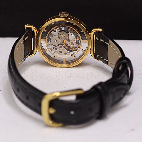 1円 稼働 JUVENIA ラウンド 手巻き 黒文字盤 レディース腕時計 0055000 10BKT MST