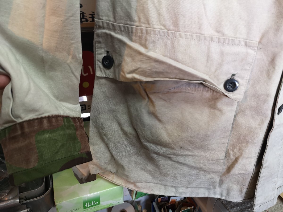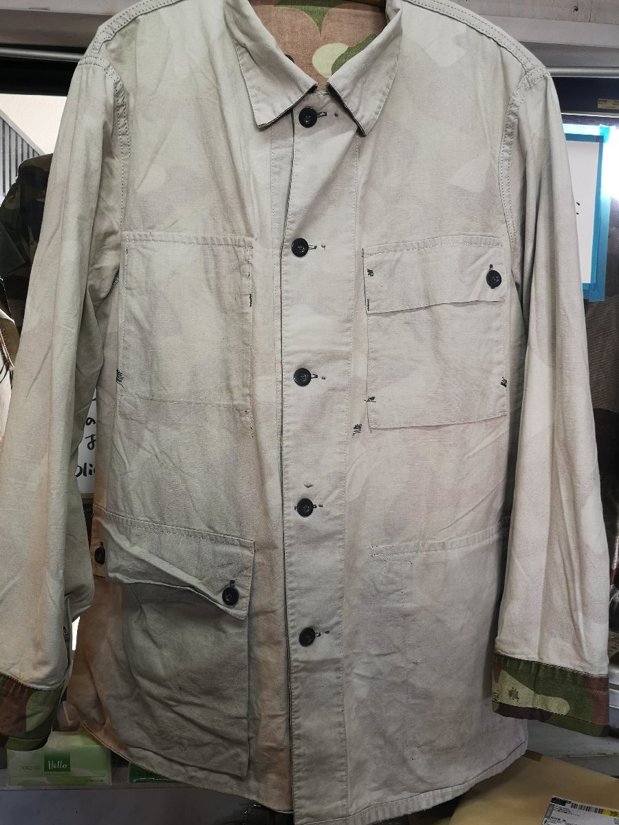 フィンランド軍M-62カモフィールドジャケットです。 80-90年代頃に採用されていた後期型になります。 アメーバタイプの迷彩と雪迷彩のリバーシブルとなっています。 やや薄手の柔らかい生地が使用され、シャツジャケットのような印象です。 オーバーサイズでも綺麗な落ち感が生まれ、ジャケット本来の良さを崩さずに着用して頂けます。 補修ありです。 素材:コットン サイズ50で着丈85cm、身幅62cm、肩幅50cm、袖68cm程度です。 沖縄離島を除く全国元払い500円でお送りいたします。落札価格にプラスでお願いします。