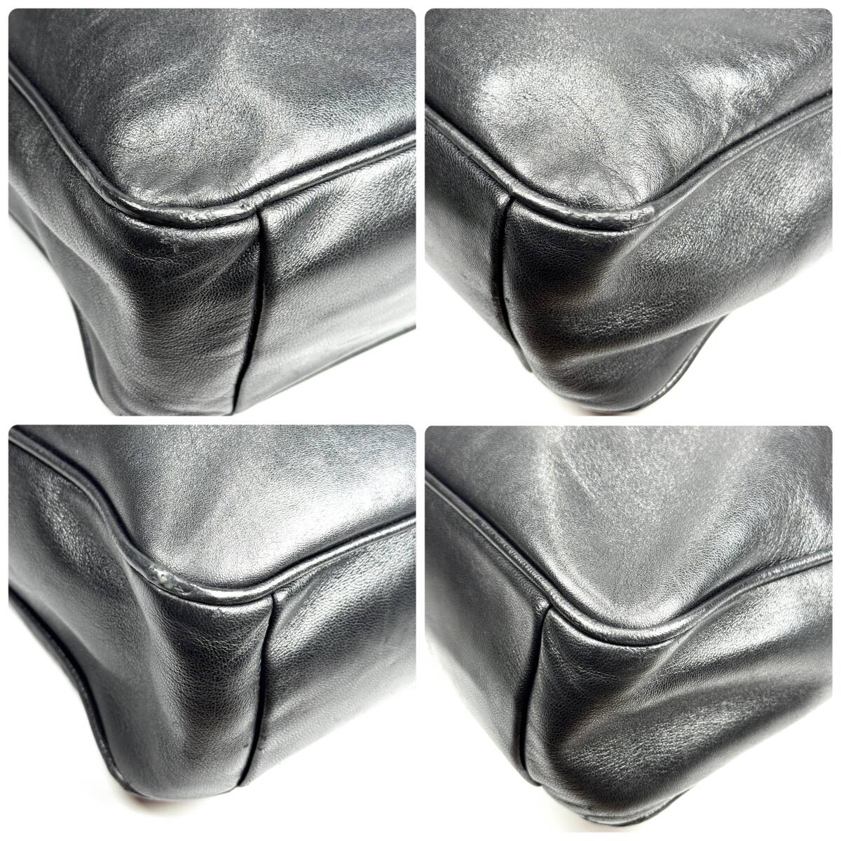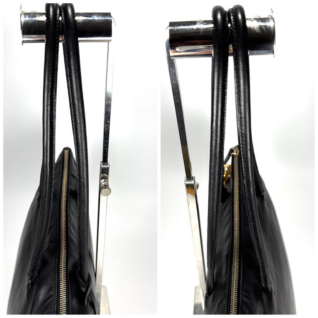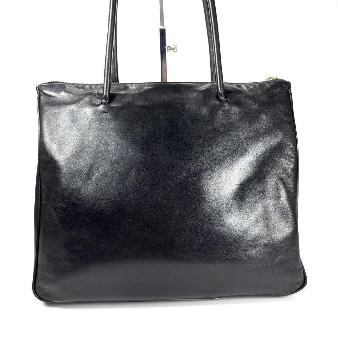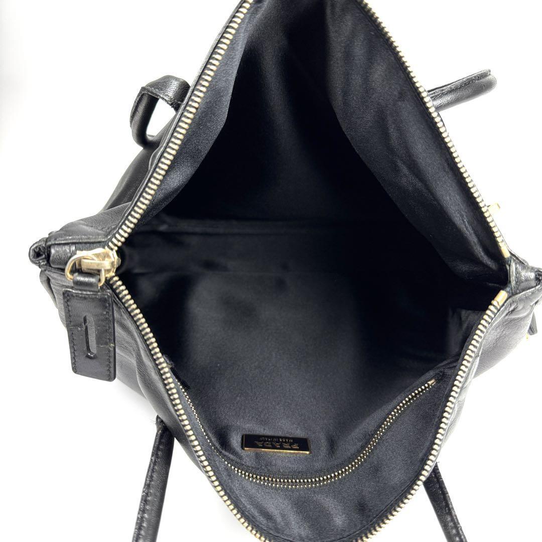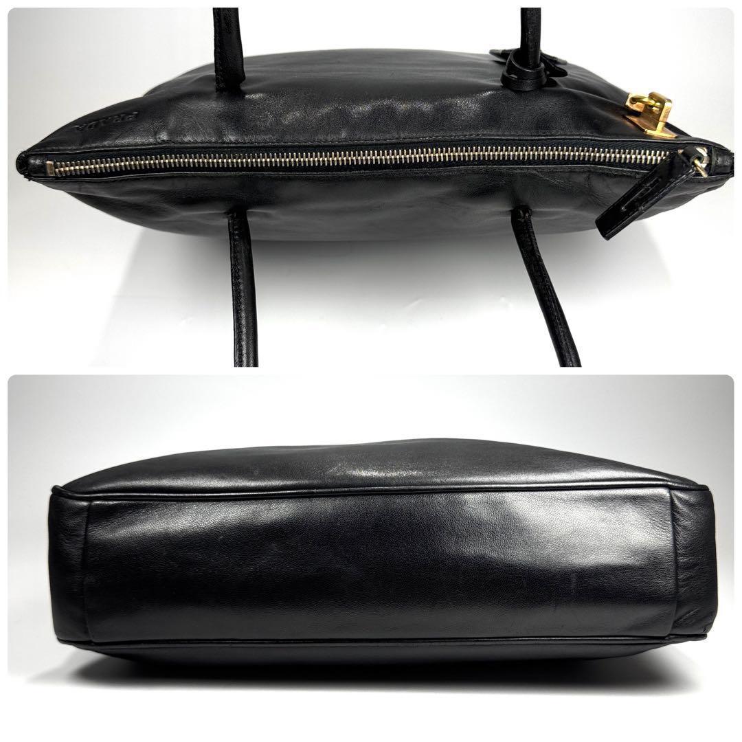 希少・レア!!! PRADA プラダ ブラックレザートートバッグ 肩掛け ロゴ型押し 南京錠 黒