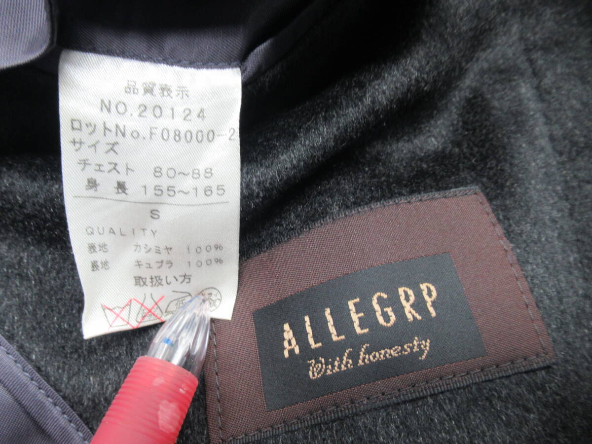 【送900円】1900 未着用品 ALLEGRP アレグロ カシミヤ100%ステンカラーコート ロング丈 ディープグレー アウター メンズ S