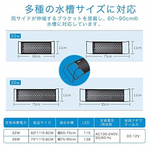 「hygger 水槽ライト アクアリウムライト LED 熱帯魚ライト 水槽用 7色LED 115LED 22W 昼光と月光モード 明るさ調整 タイ」▼▼(商品説明)22w:60~75cm・ブラック 22w:60~75cm ・・Size:22w:60~75cm・【最新の機能:24/7モード】(22w:60-75cmの水槽に適応)24時間の自動調光機能により、朝焼けから深夜にいたるまでの太陽の光を再現してくれます。この水槽用ライトは、日の出の暖かいオレンジ色のライトから正午の明るいフルスペクトルライト、夜間の星空の青いライトまで、水草の成長や魚の生活リズムに合わせて光をシミュレーションして、自然の生活条件を再現します。デフォルトのライトは午前6時に自動オン、22:30に自動オフになります。注意:実際の時間と同じに設定してください。・【超防水・高輝度LED】01水深1mの水に30分沈んでも復活できる防水性があります!02水槽ライトは耐久性のある18W高輝度LEDを採用して、色温度は7000Kで、ライト1800lmの明るさがあります。完全な色比率により、フルスペクトルを実現して、太陽光を再現した高品質の水槽ライト。450から660nmまでの波長を発する性能を備えため、この1台で水草用や海水用、または水をクリアに見せたい、金魚をキレイに見せたい