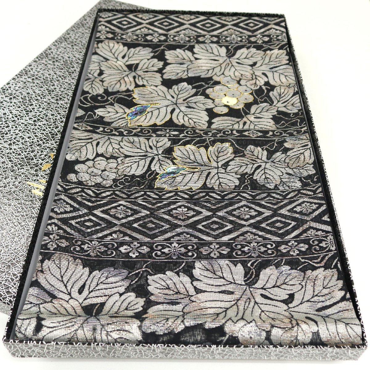 タイトル | 和遊館 OFK2129 西陣織 藤本隆士 螺鈿 ブラックダイヤ 虹彩織 高級 袋帯 |