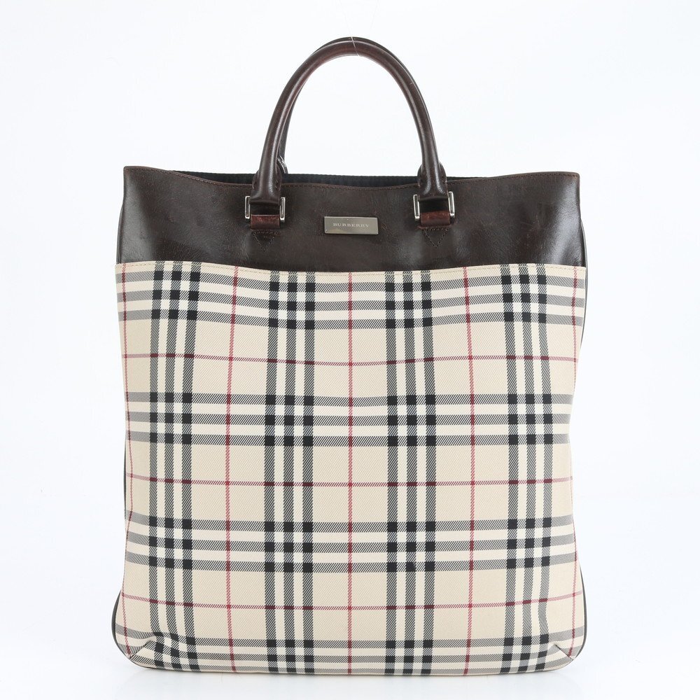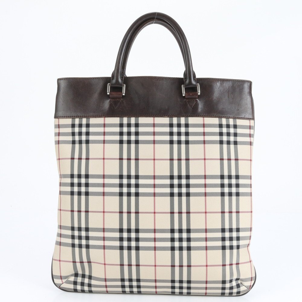 1円■極美品■バーバリー■ノバ チェック レザー トート バッグ ショルダー ビジネス 通勤 書類鞄 A4 ベージュ ブラウン メンズ ERE CV32-2