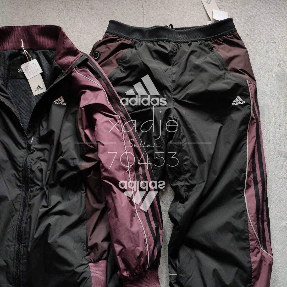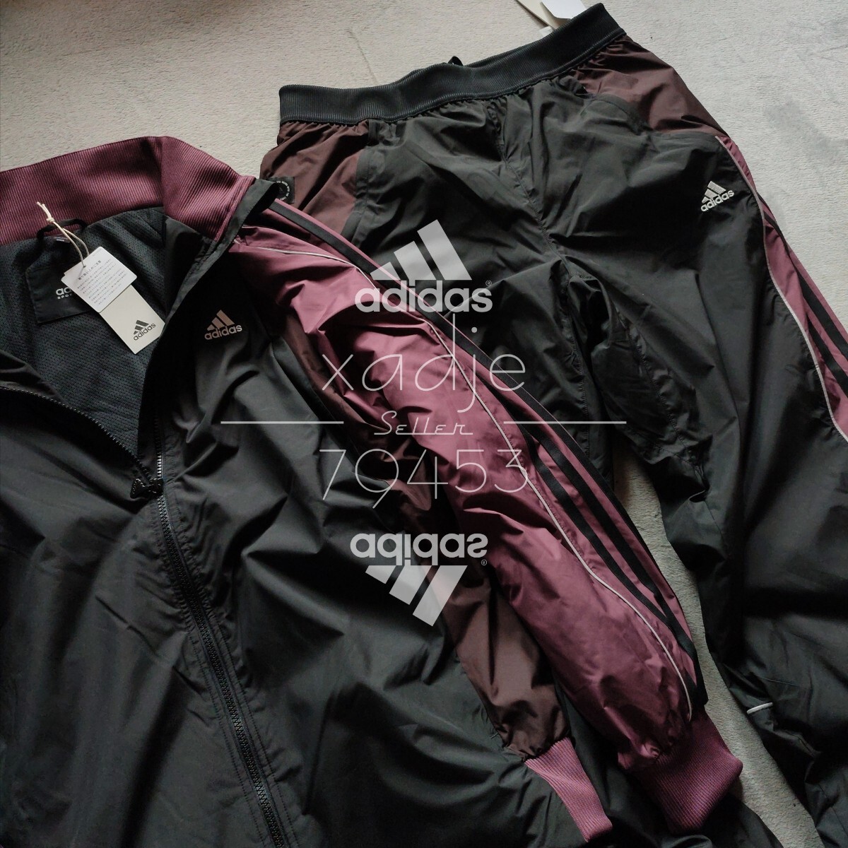 新品 正規品 adidas アディダス 上下セット ナイロン ウィンドブレーカー セットアップ 黒 ブラック ロゴ 刺繍 定価18700円 XL