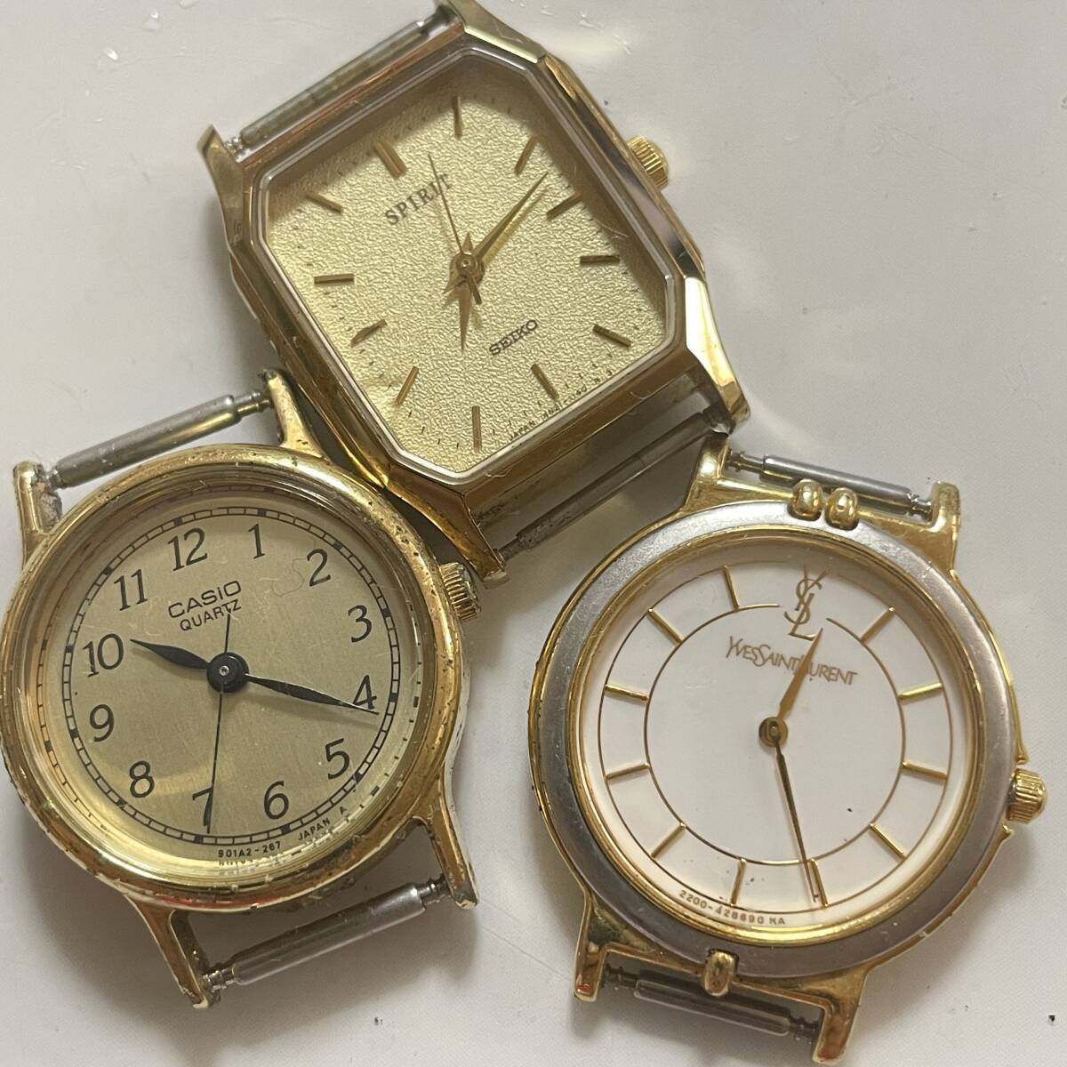【商品名】腕時計 まとめて セイコー カシオ アルバ イブサンローラン など 【付属品】画像がすべてです。 【状態】 汚れ、擦れ傷、使用感など何らかのダメージがあります。 わかる範囲での状態を明記しております。それ以外の不具合がある場合がありますので、現状渡し、ジャンク扱いとなります。 ※商品説明に記載されてる内容以外の確認は一切行っておりません。記載以外の内容に関しての対応は受け付けておりませんので、予めご理解いただいた方のみご入札をお願いいたします。 | |||