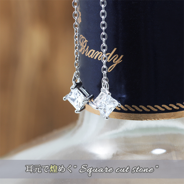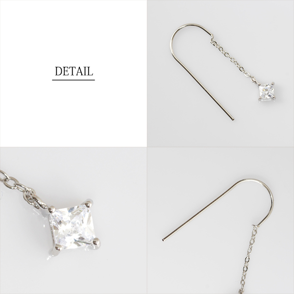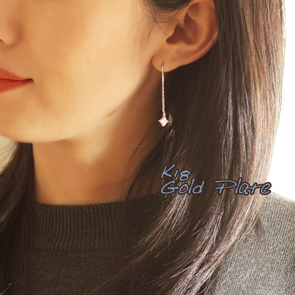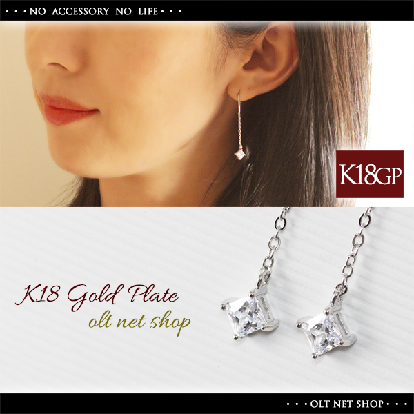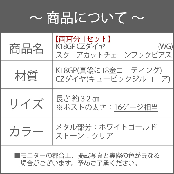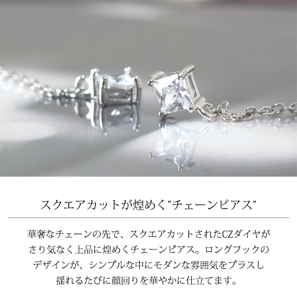550円スタート/新品/ピアス/K18GP/フック/レディース/シルバー/18金/ホワイトゴールド/両耳/ロング/チェーン/揺れる/ダイヤ/CZ/WG