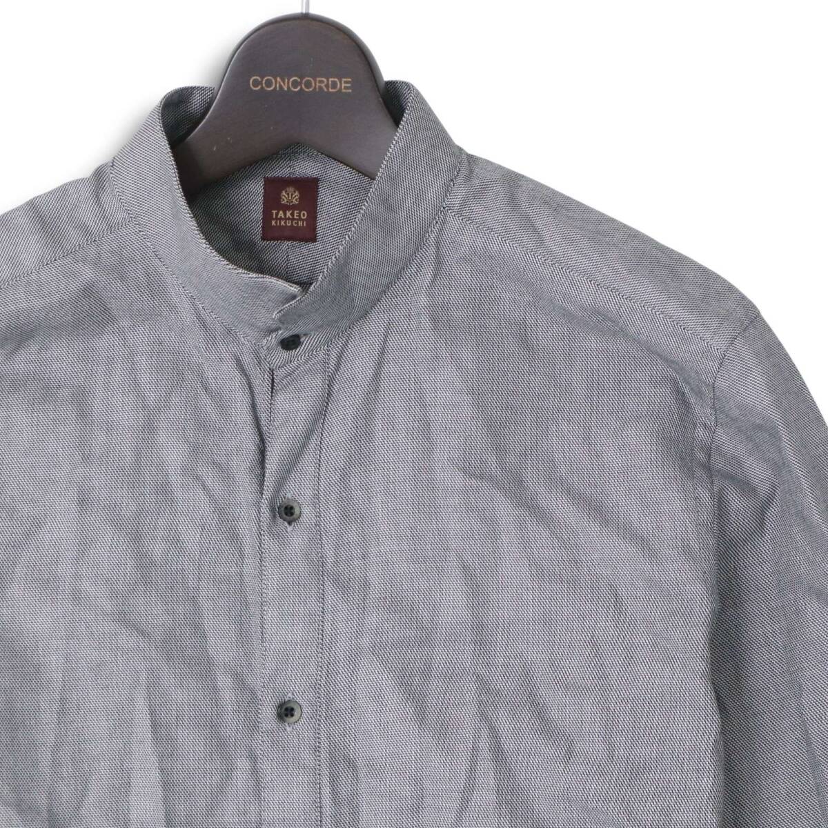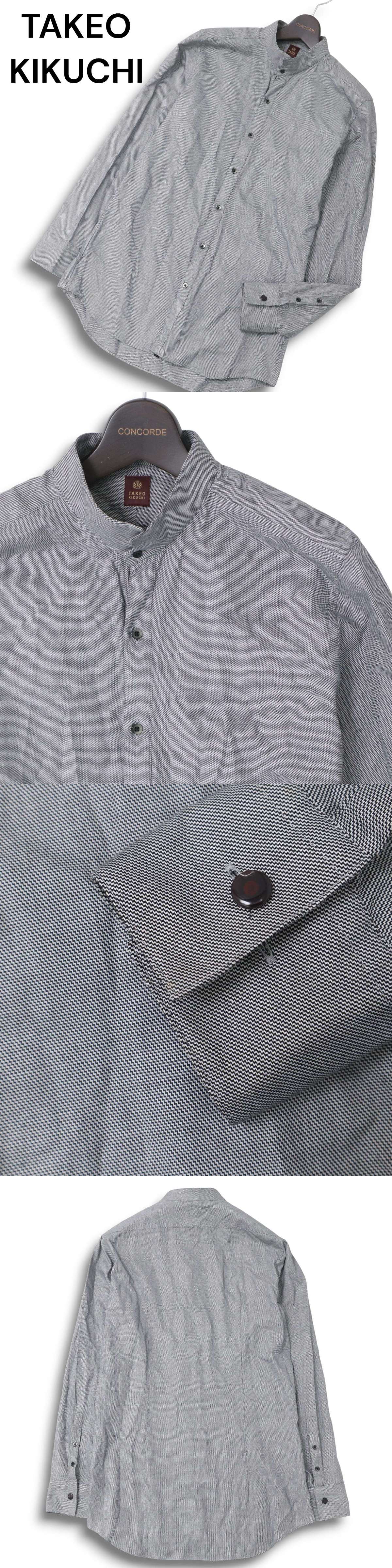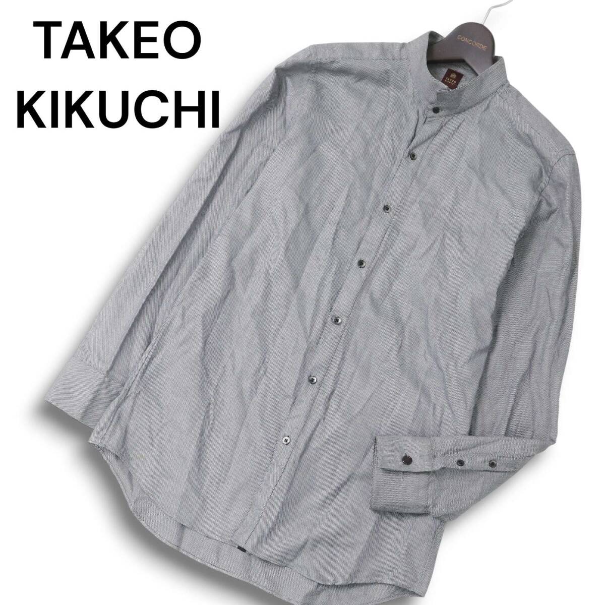 TAKEO KIKUCHI タケオキクチ 通年★ 波柄 総柄 長袖 スタンドカラー シャツ Sz.3 メンズ 灰 グレー 日本製