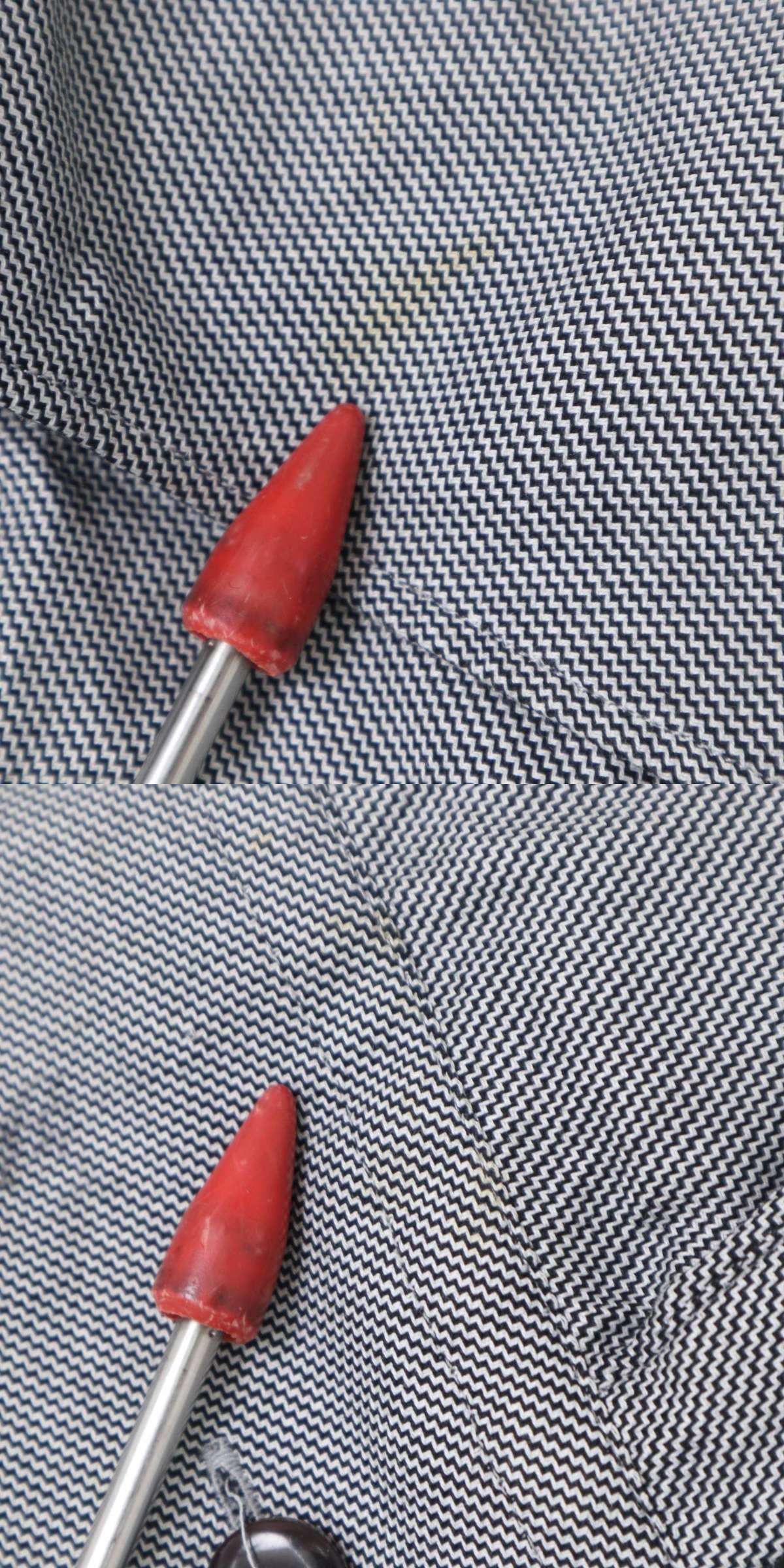 左裾口、右下付近にごく僅かな汚れがございます。着用に問題はございません。