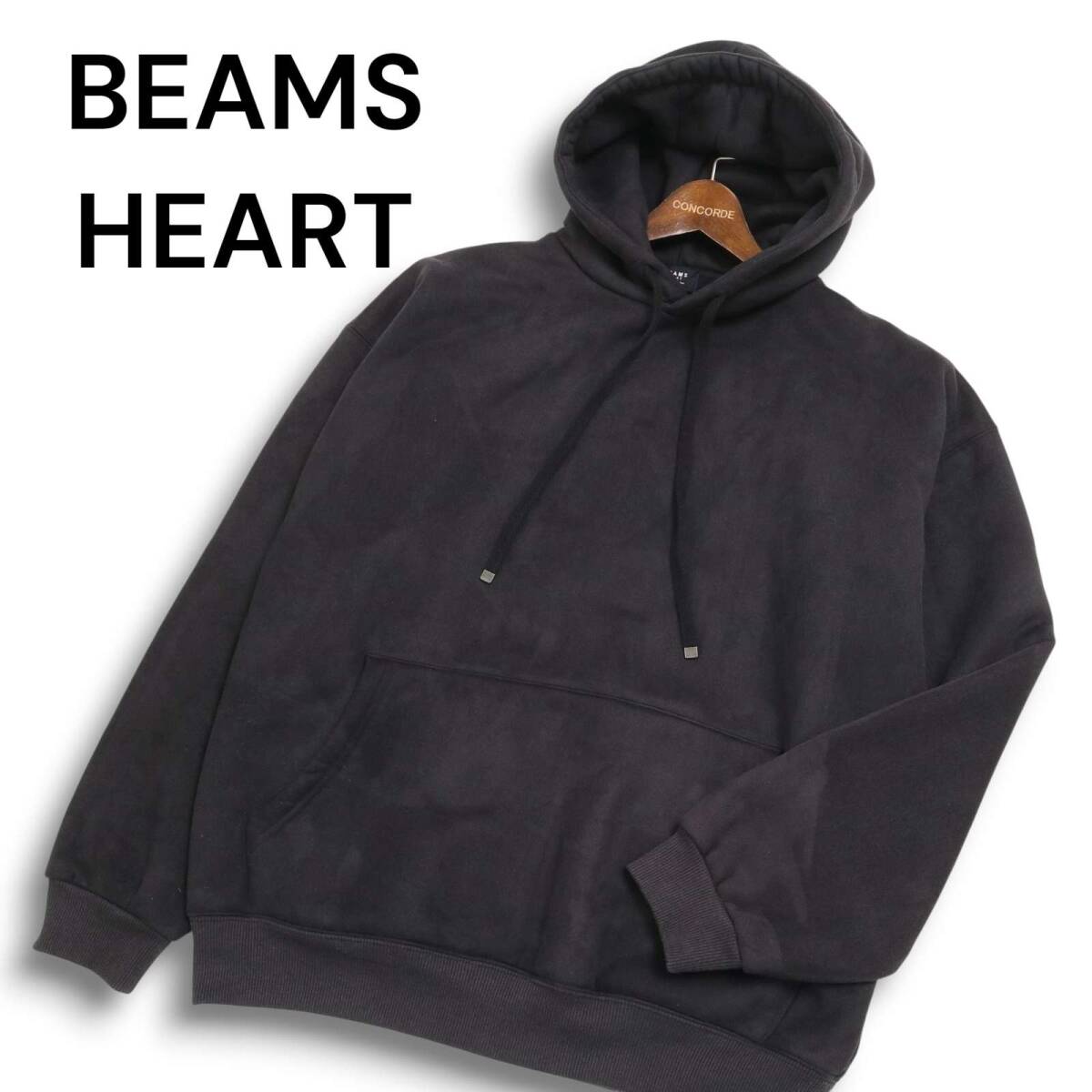 BEAMS HEART ビームス ハート 秋冬 裏ボア フェイクスエード★ オーバーサイズ パーカー プルオーバー Sz.S メンズ 黒