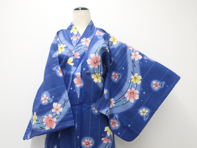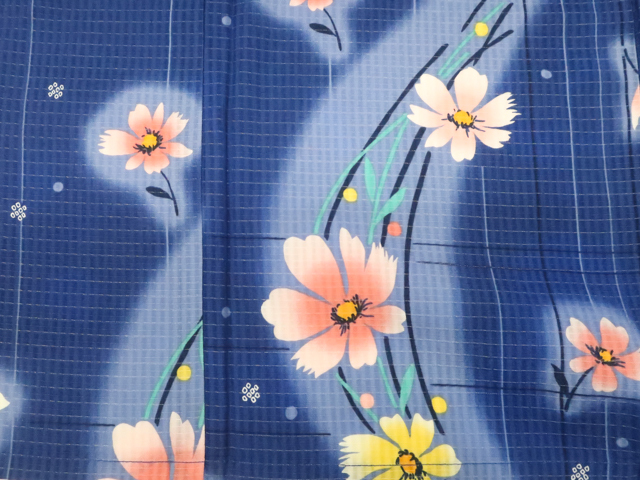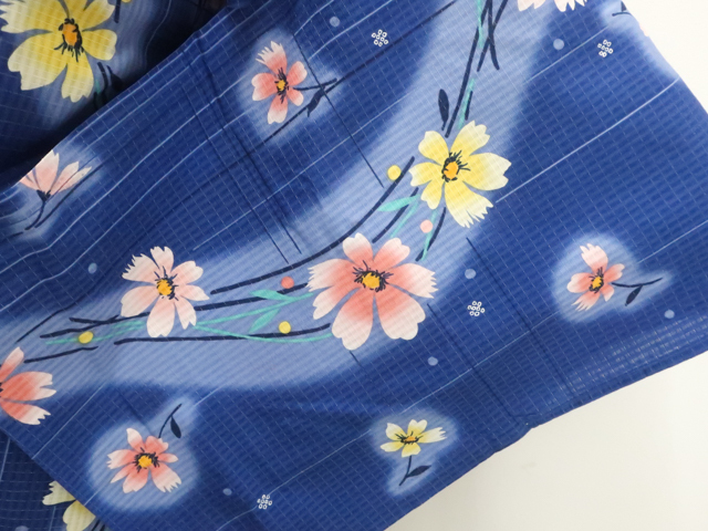 リサイクル商品ではございますが、大変良い状態のお品です。 地色は青です。 1枚目の画像が近いお色かと思われます。 素材は綿、ポリエステルです。 |