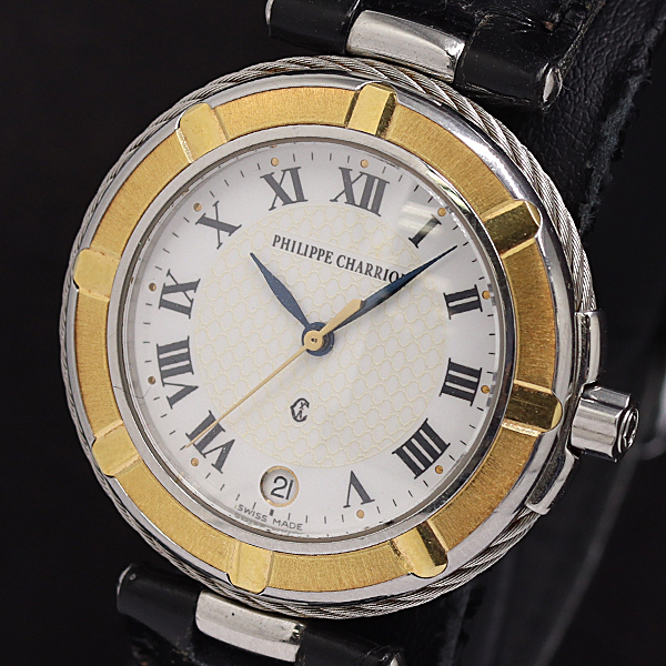 1円 稼働 フィリップシャリオール ラウンド 55.94.1534 QZ ホワイト文字盤 メンズ腕時計 1927000 10NGB MST