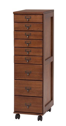 即決可@新品天然木キャスター付きチェスト9段/ブラウン | ||||||||||||