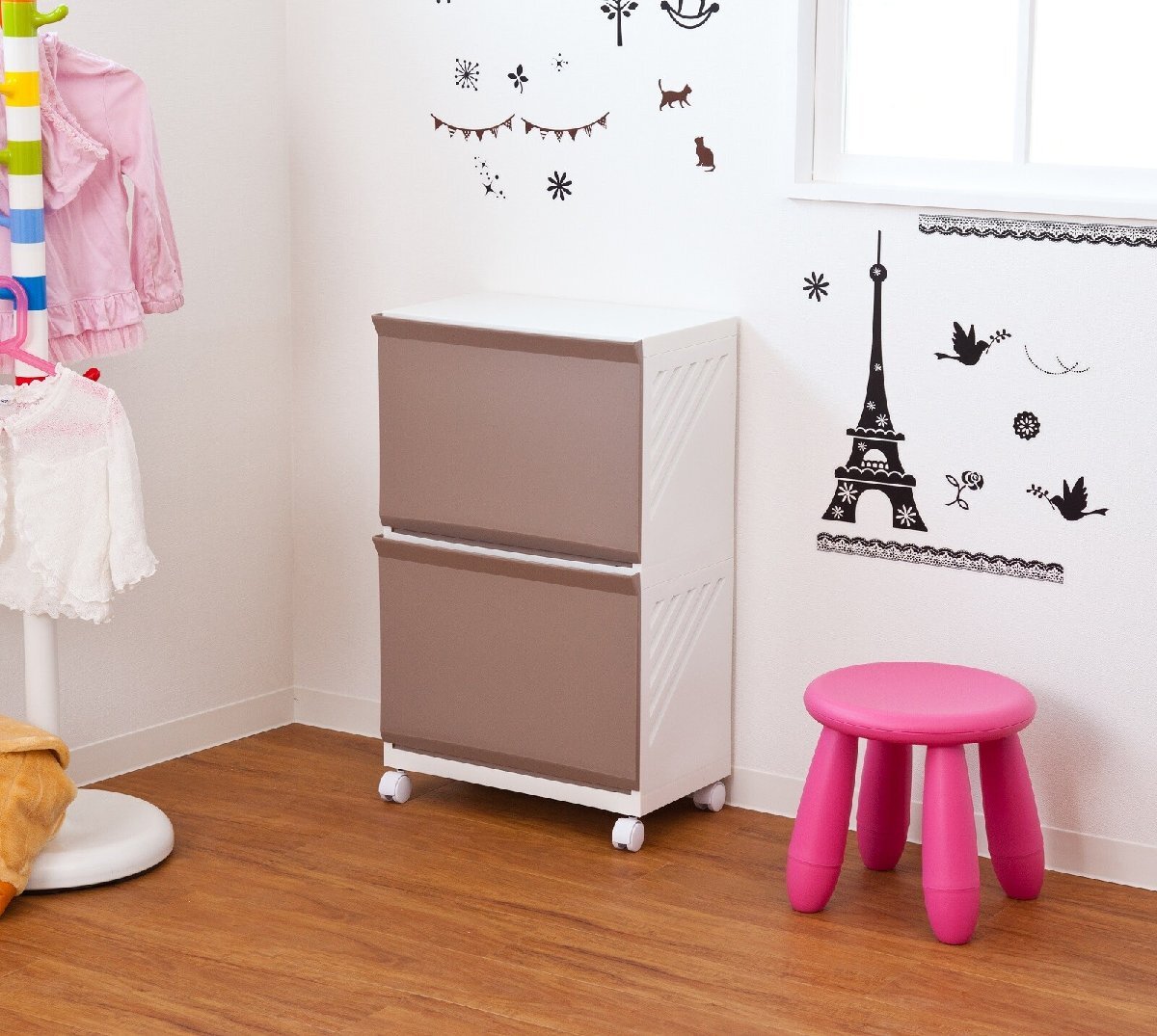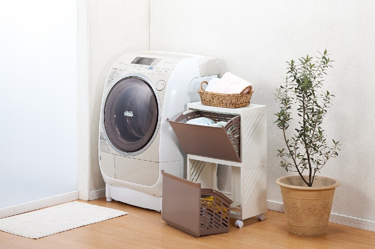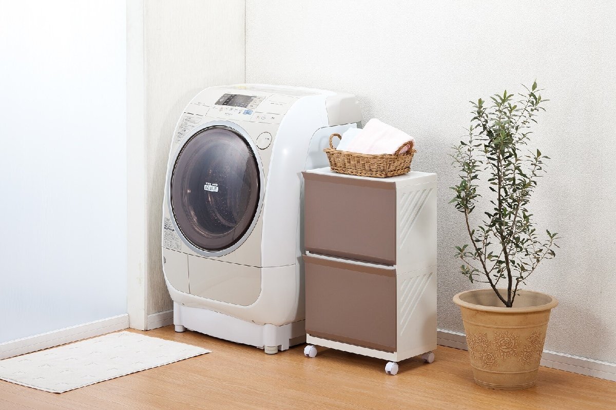 即決可@新品[日本製ランドリーバスケット付き]通気性抜群隠せるランドリーラック2段キャスター付クレバン/ベージュ | ||||||||||||