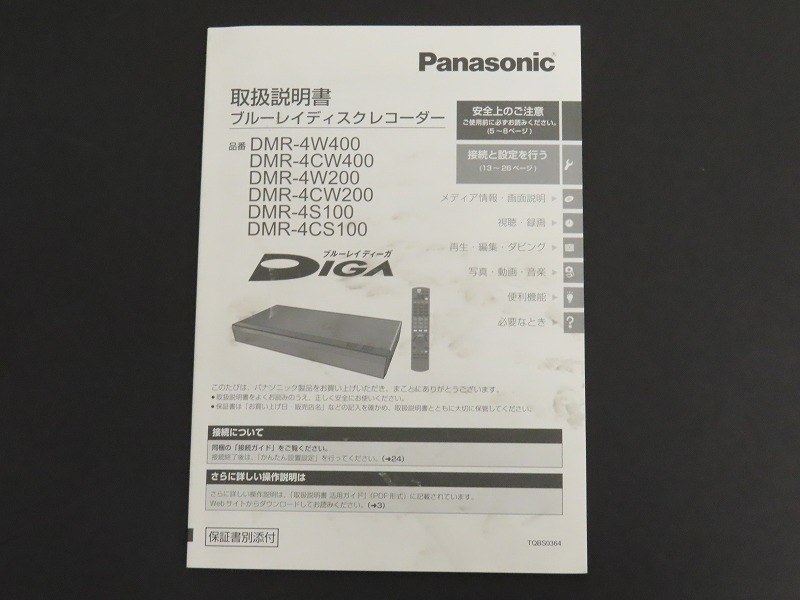 ■メーカー : Panasonic ■型番 : DMR-4W200 ■外径寸法 : W430×H66×D199mm ■重量 : 2.6kg 【商品の状態 当店での確認内容】 基本動作確認済み 「商品の状態」に関しましては当方主観の目安となります。外観などは中古品で個人差もありますので詳細は画像にてご判断ください。 画像にて不明な点はご質問下さい。 出品商品は画像のものですべてになります。画像に写っているもの以外は付属いたしません。 ※注意※ ヤフオクのシステム上、送料表記が送料未定となっておりますが、送料に関しては全て有償となりますので下記を参照下さい。 【送料 全国一律 2,080 円 沖縄、離島は別途お見積り】 ※送料がお得になるサービスです(下取りシステムのご案内です) 当ストアでは商品を安全にお届け出来るよう提携運送会社と協議の上、発泡緩衝材や強度段ボールの使用等 運送会社が指定する梱包方法や資材を採用しております。 より安全にお届け出来るよう商品仕様により梱包サイズが大きくなる場合や個口数が増える事がございます。 【当ストアオークションルールを入札前に必ずご確認ください。】 【落札後の取引手順】 ・落札後は取引ナビにて、必要事項をご入力後、送信ください。 取引終了後48時間(土、日は除く)以内に入力をお願い致します。 ※ご連絡が頂けない場合は落札者様都合でのキャンセルとさせていただきます。 ・落札代金(商品代金+消費税+送料)の入金をお願い致します。 ※大型商品の場合は送料確定後の決済となる為取引ナビを入力頂き、当ストアより送料のご案内が来るまでお待ちください。(土曜、日曜、祝日の場合は翌営業日より順次ご案内いたします) ・お支払い方法は※クレジットカード/※PayPay残高/※PayPayクレジット/PayPay銀行/ゆうちょ銀行のみです。 ※商品代金引換(代引き)のお取り扱いはしておりません。 ※領収証の発行が必要な方はご連絡ください。 ※銀行振込の際の振込手数料はご負担願います。 ・入金確認後に出荷手配を致します。 (原則入金確認後3営業日以内に発送いたしますが、大型や重量のある製品はお時間をいただく場合もございます。) ・発送は当店指定の運送会社の元払いのみでの発送となります。 ※他の運送会社、送料代引き等は致しかねます。 ※落札者様ご自身での運送会社の手配いただく事も可能ですが荷物事故の責任の所在の問題上、梱包は致しかねます。 ※店頭にお越し頂き手渡しも可能(福岡市早良区)です。ご希望の方はご落札後にご連絡下さい。 ・大型/重量物商品の送料につきましては商品の特性上、荷降ろし状況等により送料が大きく前後し運送業者に別途見積りが必要な為、早めのお問い合わせにてお見積り上、入札をお願い致します。 【初期不良の保証について】 ・商品到着後の初期動作不良、また配送中の事故による破損、不具合が有る場合は、商品発送後10日以内に当ストアまでご連絡ください。当ストアでは修理での対応を優先させて頂きますが、修理不可の場合は全額返金させて頂きます。 (商品代金+消費税+送料のお支払い頂いた金額となります) 【初期不良の保証の対象外について】 次の場合は保証の対象外となりますのご留意ください ・ジャンク商品、現状商品、難あり商品での出品商品。 ※難あり商品に関しましては動作確認時に一部動作不良が確認された商品になり、記載している動作確認以外にも、動作不良がある可能性もございます。こちらに関しましても保証対象外となりますことをご理解ください。 ・年代物のオーディオなどで、当店にてわからない範囲で部品が交換されている場合 ・楽器類の特殊機材(マイクロスコープ等)での確認までは行っておりません。気になる方は事前にご質問いただくか、入札をお控えください。 ※初期不良に関しましては【商品の状態】に記載のもの、またそれによって起因する動作不良は対象外です。 ※商品発送後10日を過ぎてのご連絡は対応が出来ませんので、商品が到着しましたらお早めに確認をお願い致します。 【メーカー保証の加入・継承】 ・未使用品、展示品やメーカー保証期間が残っている商品に関しまして、メーカー保証の加入、継承が必要な方は、落札後取引ナビ内にて当ストアにお知らせください。商品発送までにご連絡いただけない場合、メーカー保証の手続きを承れない場合があります。 【評価について】 ・評価不要の場合、必ず取引ナビの「要望欄」にてお知らせください。それ以外でご連絡をいただいた場合、対応できない可能性がございます。一度行った評価はシステム上取り消しが行えませんのでご了承ください。 【入札削除・キャンセルについて】 ・入札後はトラブル防止の為いかなる事情がおきましても入札を削除等は致しておりません。 ご検討の上入札をお願い致します。間違った際の入札額の金額訂正はご自身で行ってください。 入札額の変更方法 【入札に関しての注意事項】 ・最近イタズラ入札が多く見られるため、新規IDや悪い評価が一定数あるI