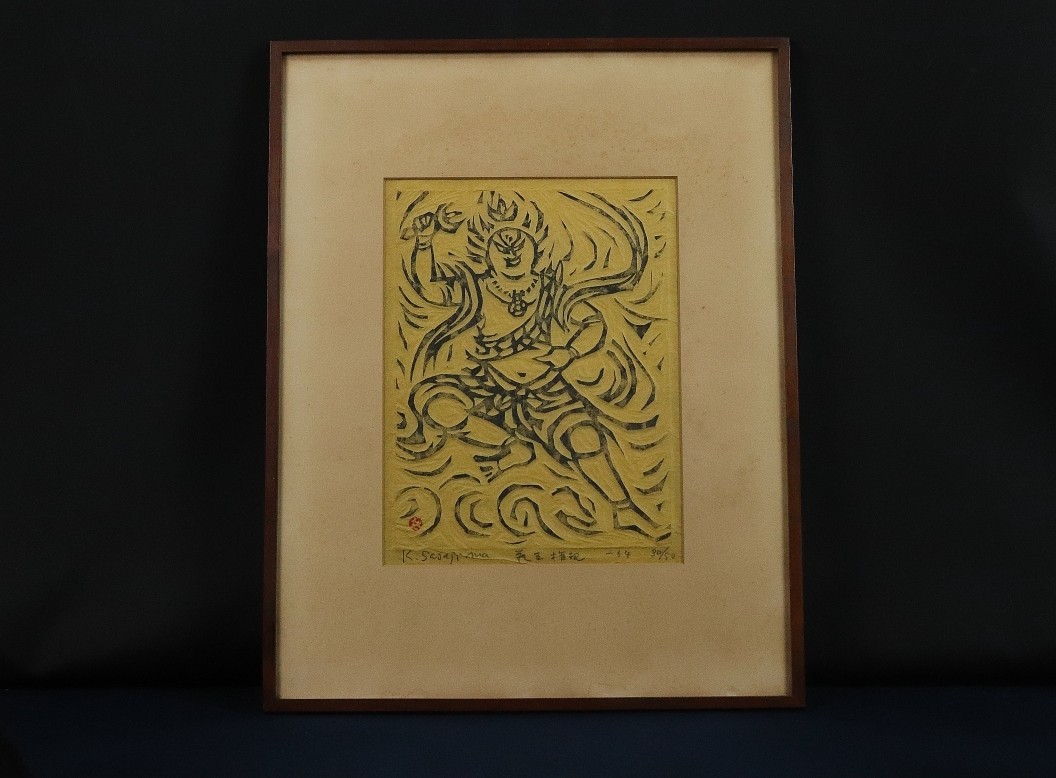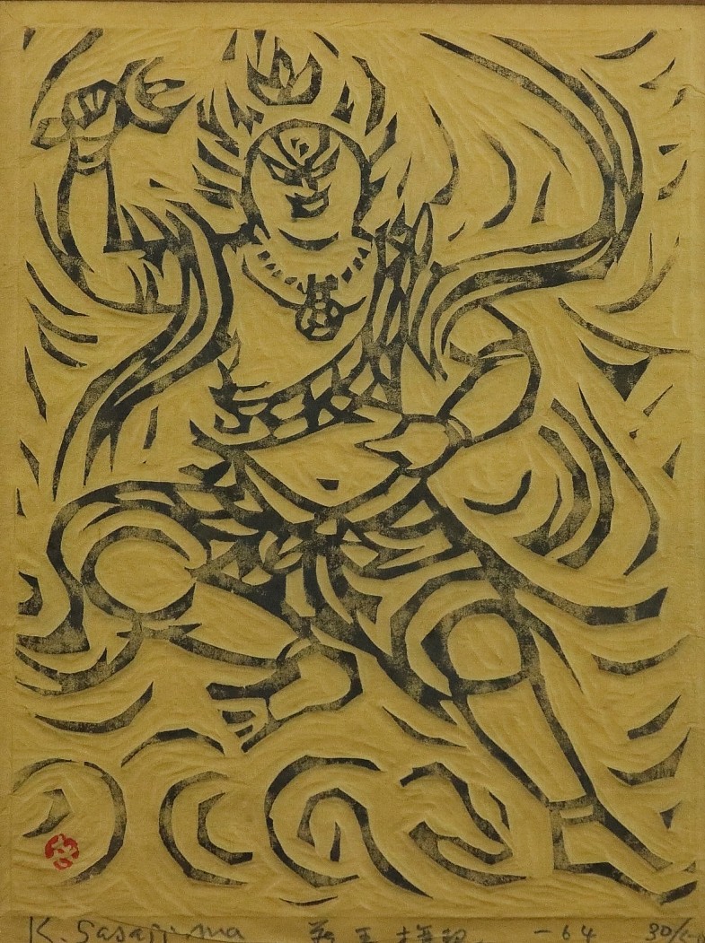 11142■【真作】笹島喜平 「蔵王権現」 木版 拓刷 限定50部 直筆サイン 棟方志功に師事 国画会会員 日本版画協会名誉会員 額装