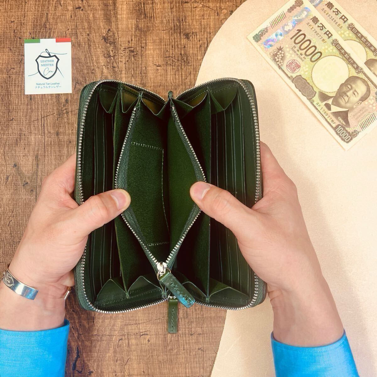 ファスナーは純正YKKを使用していますので重厚感があり、サドルレザーウォレットとの相性が抜群です。